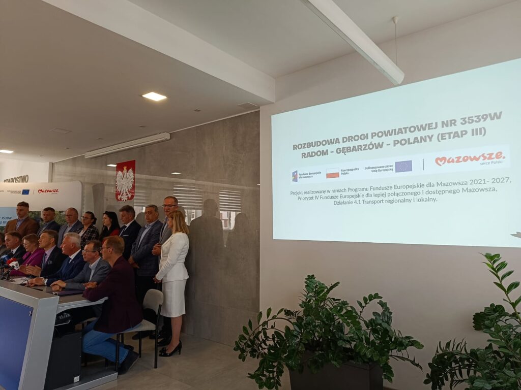 W dniu 09.05.2025 r. w siedzibie Beneficjenta tj. Starostwie Powiatowym w Radomiu została podpisana umowa z Wykonawcą robót Przedsiębiorstwem Robót Inżynieryjnych „FART” Sp. z o.o. reprezentowanym przez wiceprezesów zarządu Wiesława Ruchomskiego oraz Macieja Szczukiewicza na rozbudowę drogi powiatowej nr 3539W Radom – Gębarzów – Polany (III etap) o długości ponad 5,5 kilometra. Prace obejmą odcinek od miejscowości Bardzice w gminie Kowala do Zalesic w gminie Wierzbica.