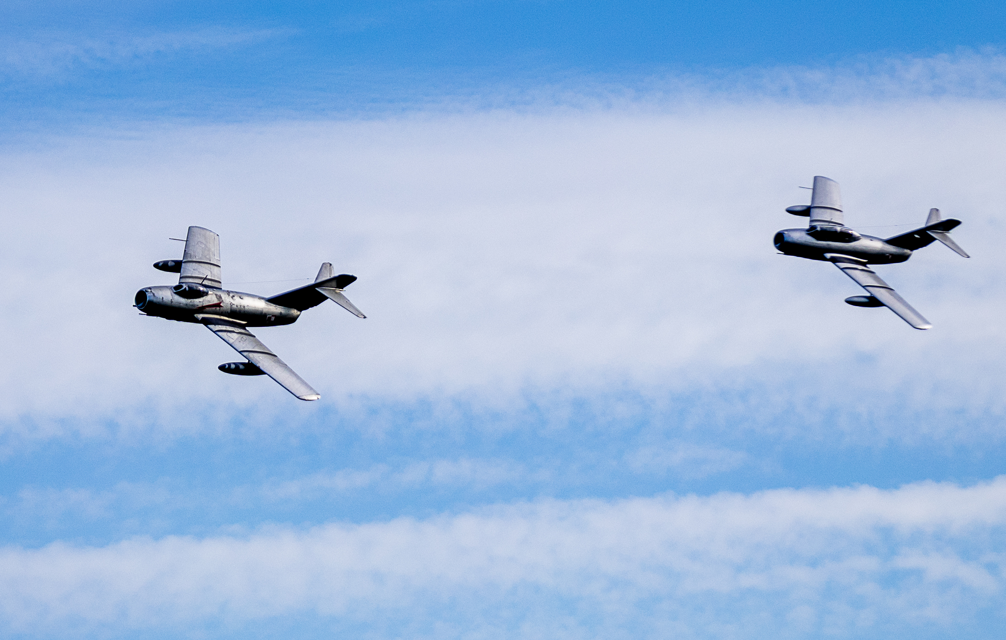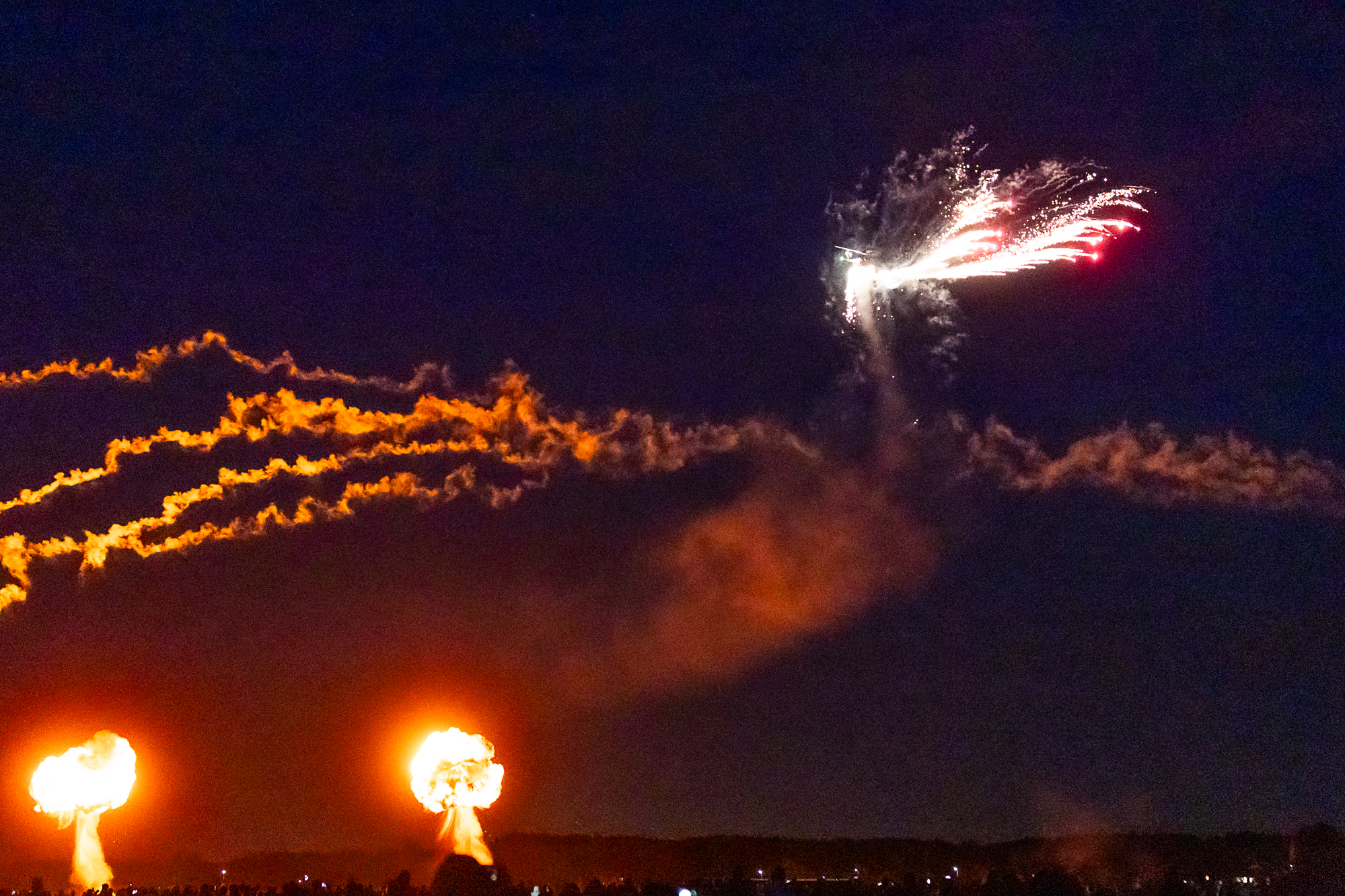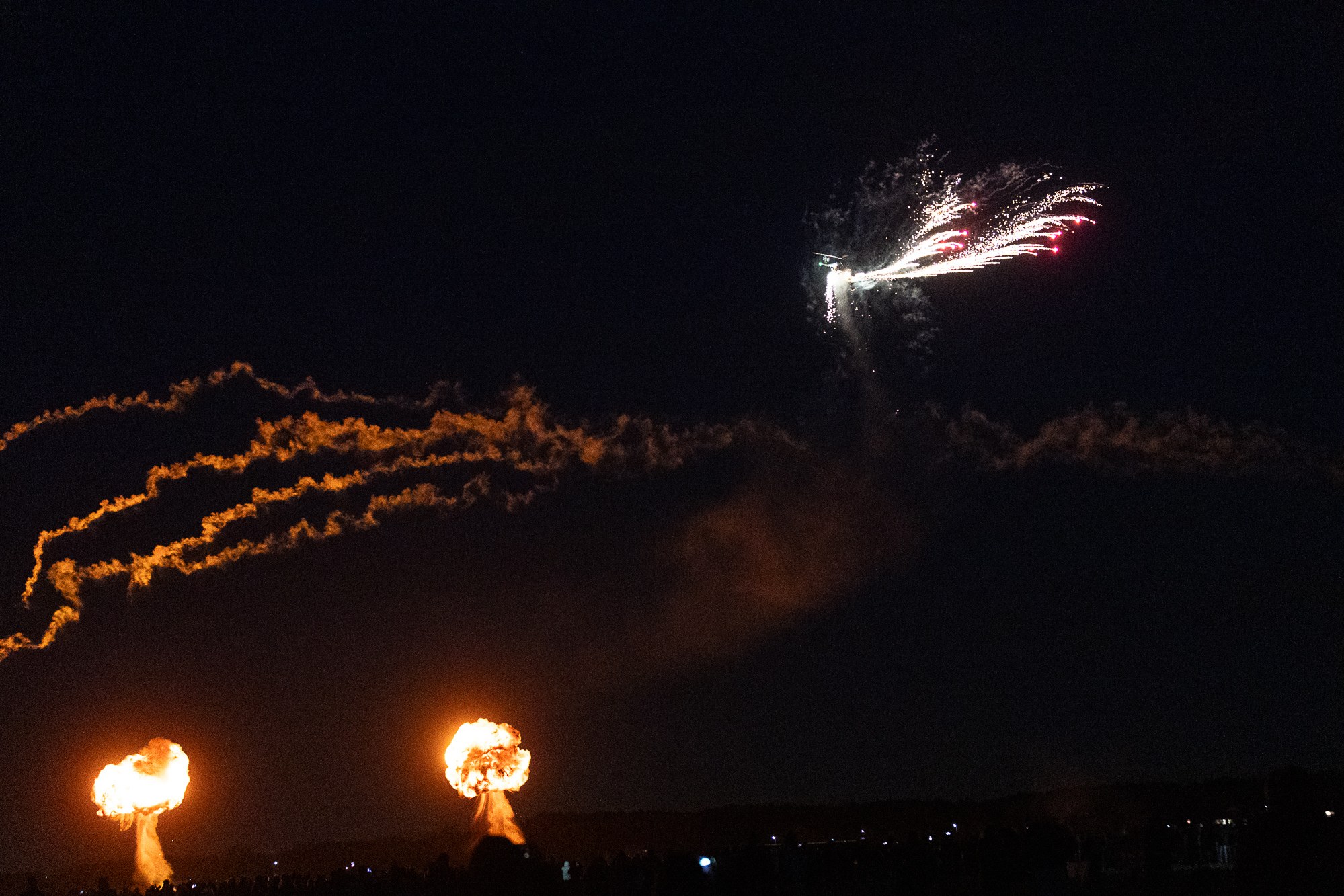 Nad lotniskiem pojawiły się trzy samoloty Lim, w tym również Lim – 5 prywatny odrzutowiec. Był też legendarny dromader M18. A na wieczór fantastyczne nocne pokazy z pirotechniką wypuszczą też przez spadochroniarzy.