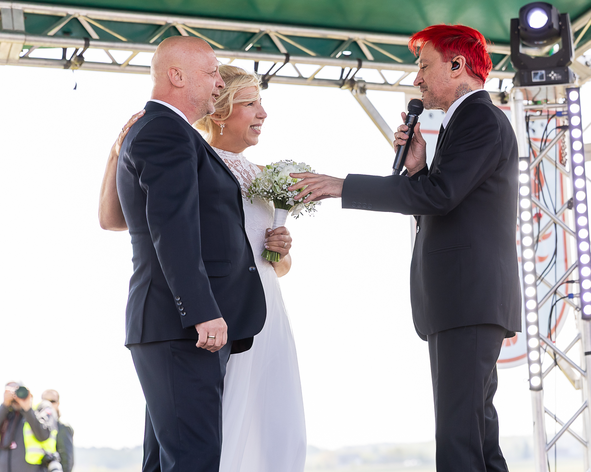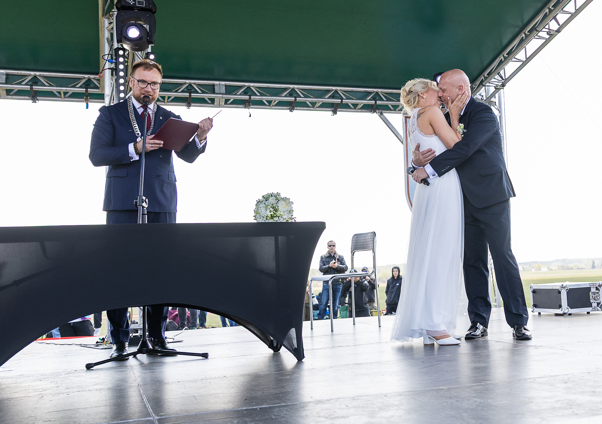 Zanim na dobre rozpoczął się AirSky, na scenie doszło do historycznego ślubu! Pobrali się Witold Sokół i Inga Piasecka. Oboje związani od lat ze środowiskiem lotniczym. Przylecieli do Piastowa śmigłowcami Bo105 oraz UH-1. Rolę kierownika Urzędu Stanu Cywilnego pełnił Kamil Dziewierz, wój gminy Jedlińsk.