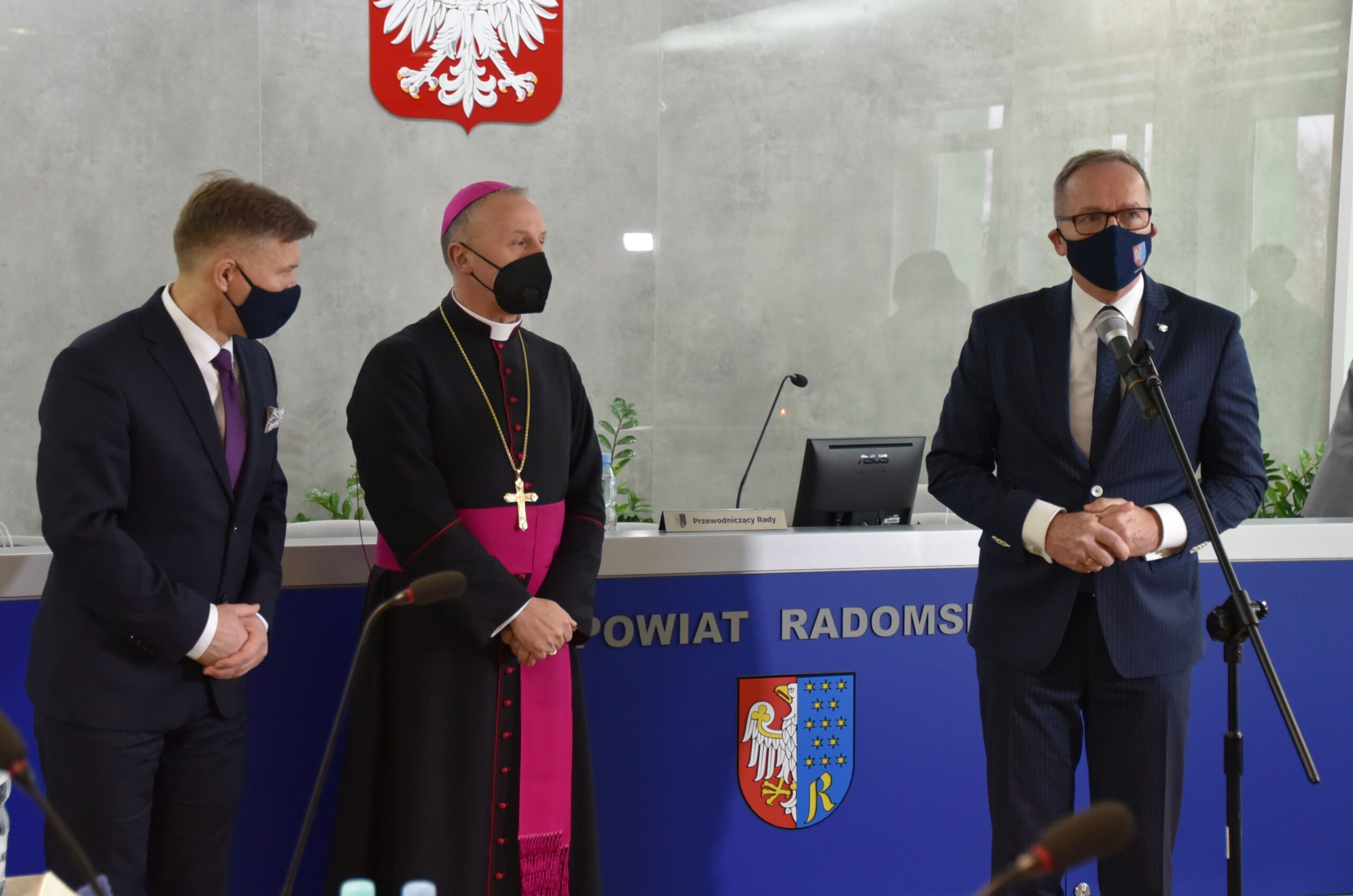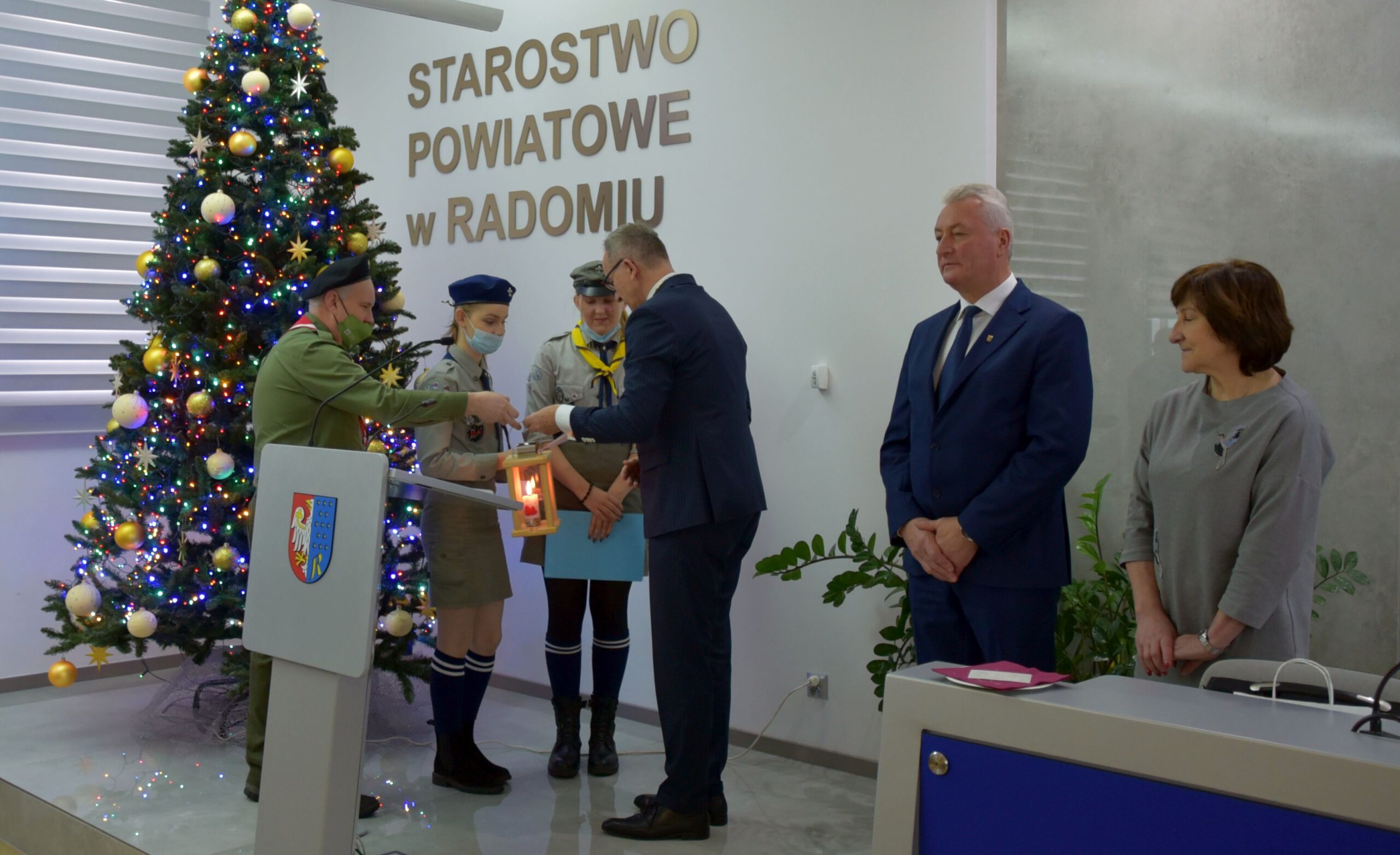 Podczas sesji Rady Powiatu Radomskiego w środę, 29 grudnia, miłym akcentem była wizyta księdza biskupa ordynariusza radomskiego. Bp Marek Solarczyk złożył życzenia przedstawicielom samorządu powiatowego oraz pobłogosławił opłatki, którymi później wszyscy się podzielili. Z kolei harcmistrz Robert Prus, komendant hufca ZHP Radom Powiat wraz z harcerzami z gminy Zakrzew przyniósł na sesję Betlejemskie Światło Pokoju.