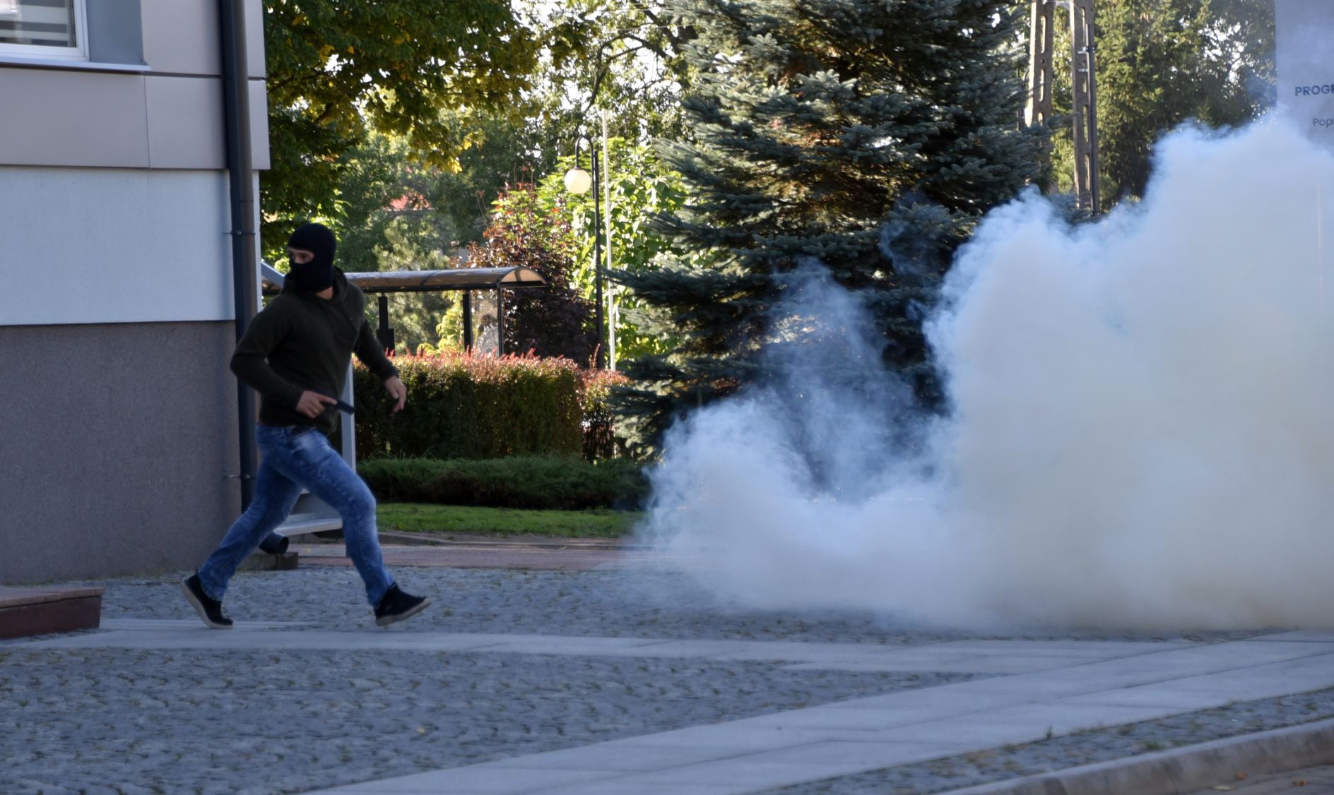 Epizodem praktycznym był również napad uzbrojonego napastnika na Urząd Gminy w Zakrzewie, gdzie podłożył on ładunek wybuchowy. W związku z tym została przeprowadzona ewakuacja klientów i pracowników urzędu. Kolejne epizody miały miejsce przy zaporze czołowej zbiornika Domaniów.