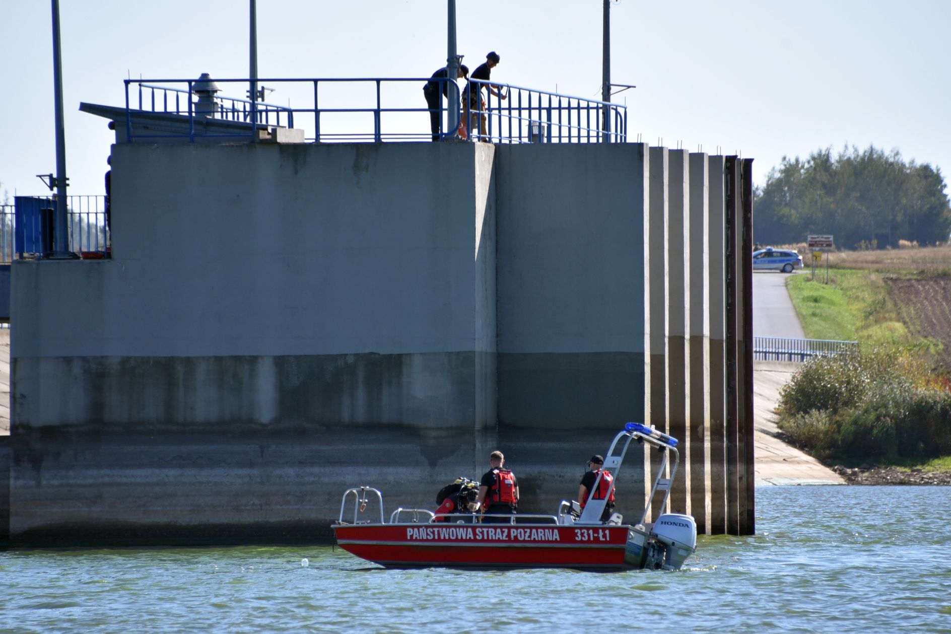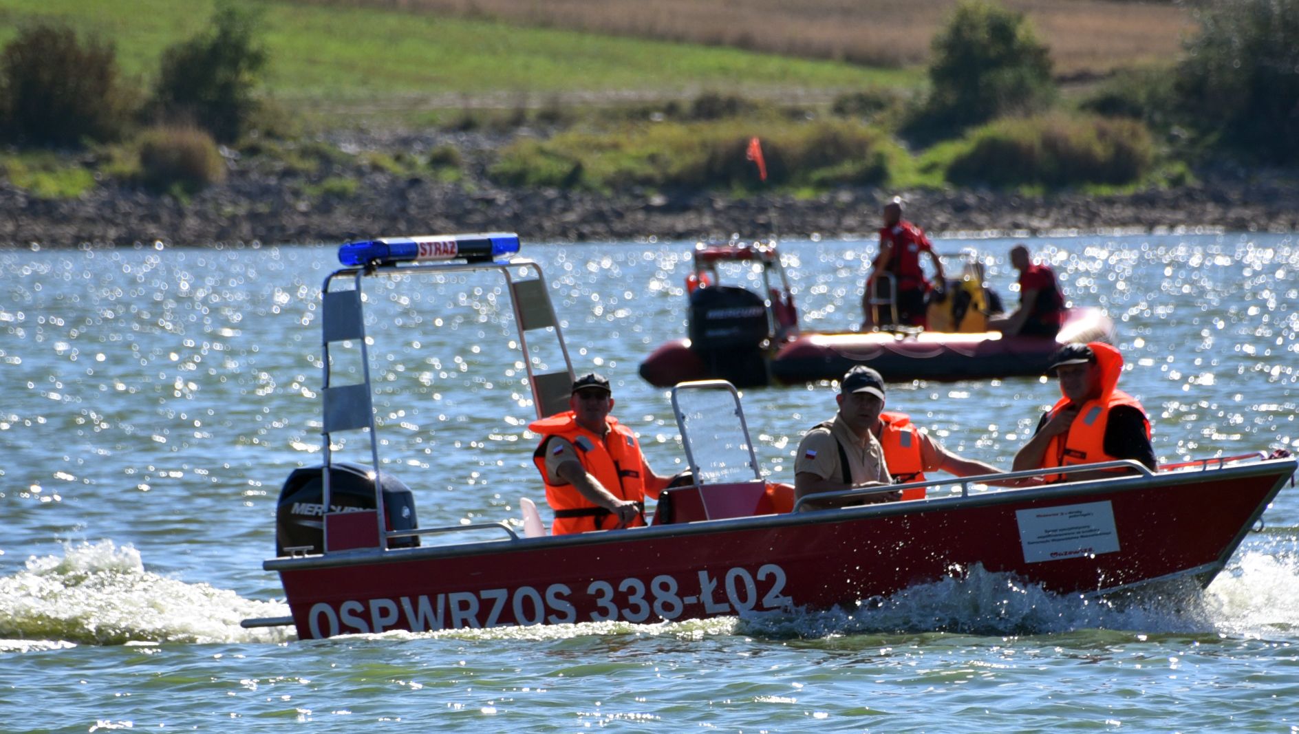 W związku z akcją na wodzie dalsze działania przejął Posterunek Policji w Przytyku, dysponujący łodzią motorową, patrolującą na co dzień zalew domaniowski. Dodatkowo do zabezpieczenia linii brzegowej zbiornika zostali zadysponowani żołnierze 6 MBOT oraz żołnierze Kompanii Saperów z Pomiechówka z kolejną łodzią. Pojawiła się również łódź Wodnego Ochotniczego Pogotowia Ratunkowego, a wkrótce potem kolejna łódź Ochotniczej Straży Pożarna we Wrzosie, zadysponowana przez Stanowisko Kierowania Komendanta Miejskiego Państwowej Straży Pożarnej.  Zabezpieczenie logistyczne, dyspozycją wójta gminy Przytyk, zaczęły realizować jednostki OSP Przytyk i OSP Domaniów.