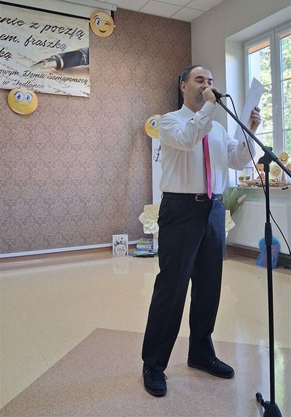 Środowiskowy Dom Samopomocy w Jedlance po raz dziewiąty zaprosił przyjaciół, by wspólnie odkrywać piękno słowa, muzyki i śpiewu. 25 września 2025 roku odbyło się wyjątkowe wydarzenie – Spotkanie z Poezją – wierszem, fraszką i piosenką, które w tym roku nosiło tytuł: „Piosenka jest dobra na wszystko – z przymrużeniem oka, z nutą kabaretową”.