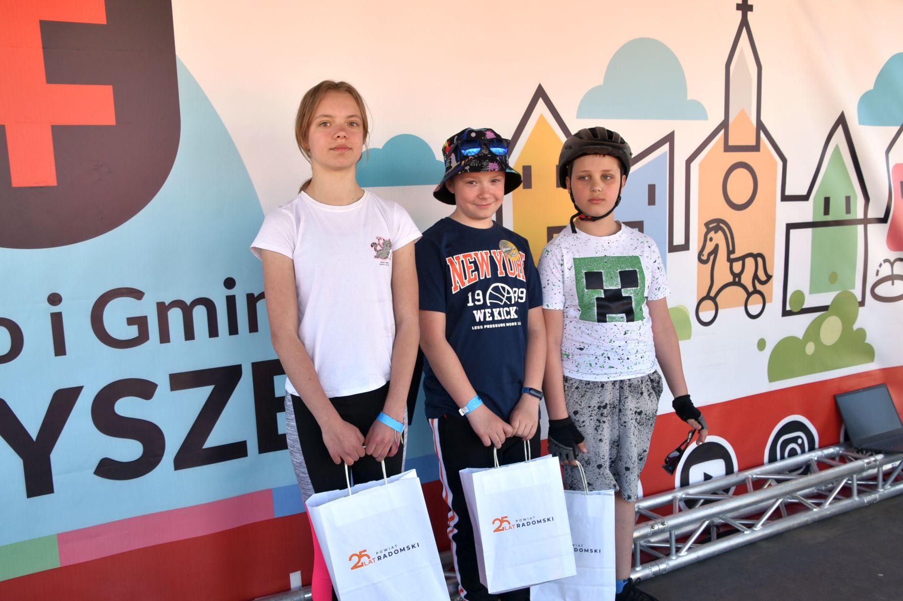 Rowerzyści przemierzyli 26 kilometrów i dotarli do Miejsko Gminnego Ośrodka Kultury w Skaryszewie. Tam na rowerzystów czekała kiełbaska wprost z rożna i ogniska. Były też występy artystyczne lokalnej młodzieży, konkursy i zabawy. Odbył się również konkurs pod hasłem „Co Wy wiecie o powiecie”. Tutaj udział chętnie wzięły dzieci. Chociaż pytania nie były takie łatwe, to młodzi uczestnicy z małą pomocą dorosłych, poradzili sobie znakomicie. Wygrała Marysia z Radomia, a tuż za nią ulokowali się Staś z Jedlni Letnisko i Kuba z Małęczyna.