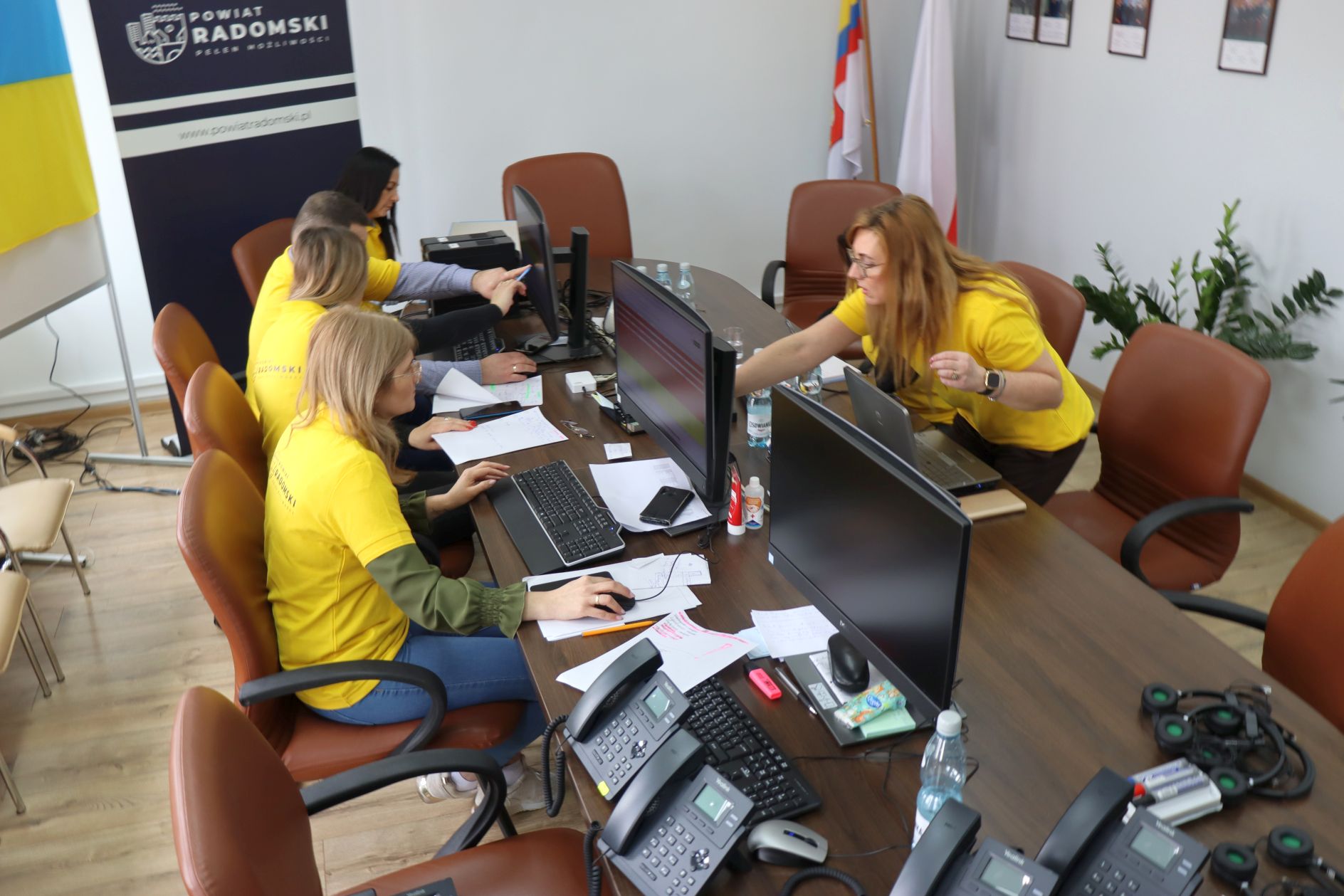 Działa też Powiatowe Centrum Koordynacji, stworzone przez wolontariuszy – pracowników Starostwa Powiatowego oraz Powiatowego Urzędu Pracy w Radomiu, jak również koordynatorów gminnych, wyznaczonych przez burmistrzów i wójtów miast i gmin powiatu. Sztab wolontariuszy liczy blisko 40 osób, pracujących stacjonarnie i zdalnie, przez 7 dni w tygodniu.