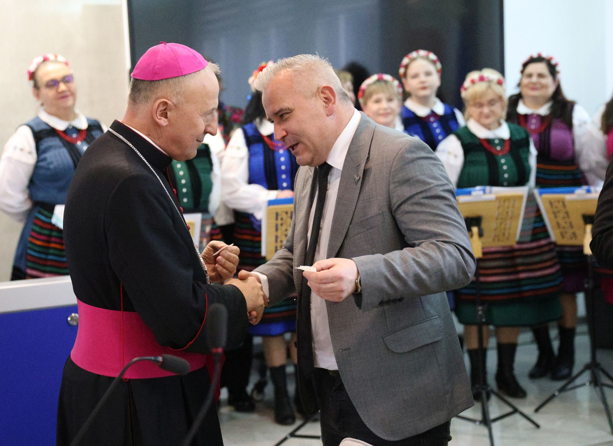 W niezwykłą atmosferę, pięknymi kolędami wprowadził zebranych zespół Skaryszewiacy. Biskup Marek Solarczyk, starosta Waldemar Trelka oraz Zdzisław Mroczkowski, przewodniczący Rady Powiatu złożyli przybyłym świąteczne życzenia. Wszyscy podzielili się opłatkiem, a na koniec radni wspólnie zaśpiewali kolędę przy akordeonowym akompaniamencie radnego Marcina Alota.