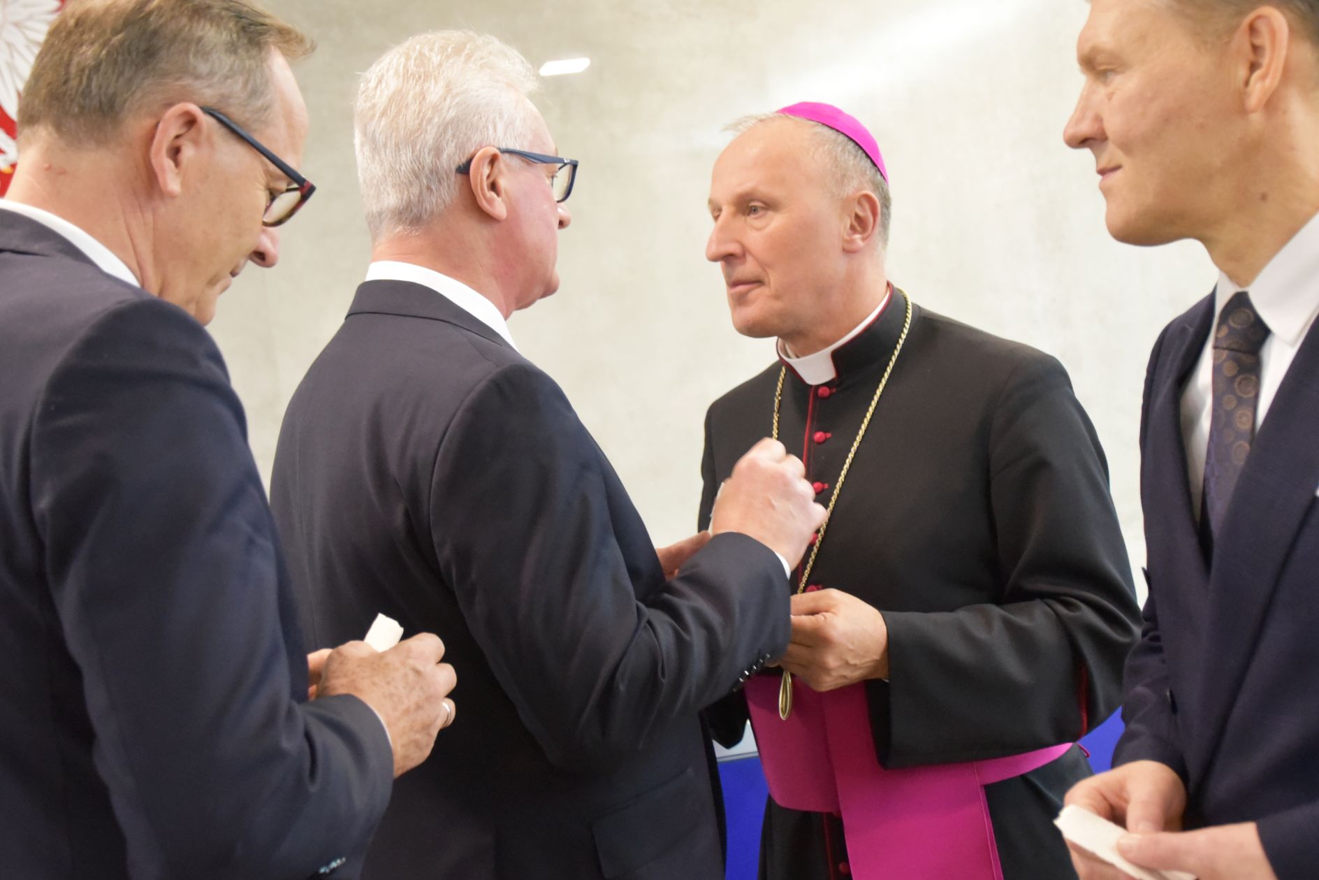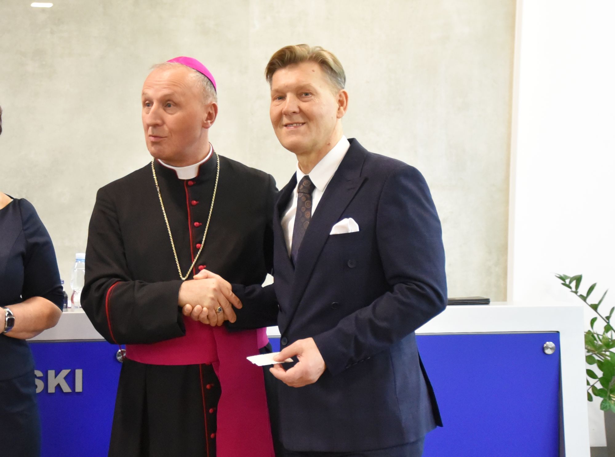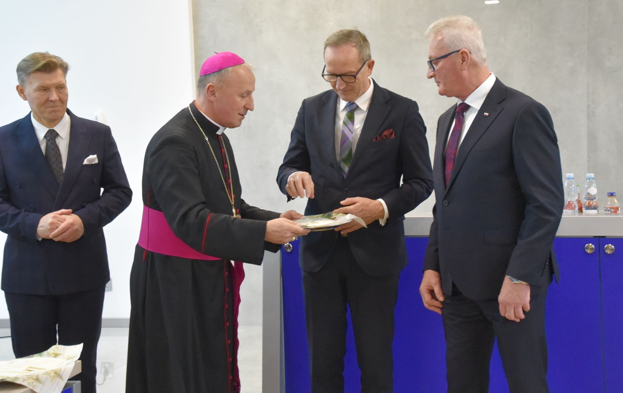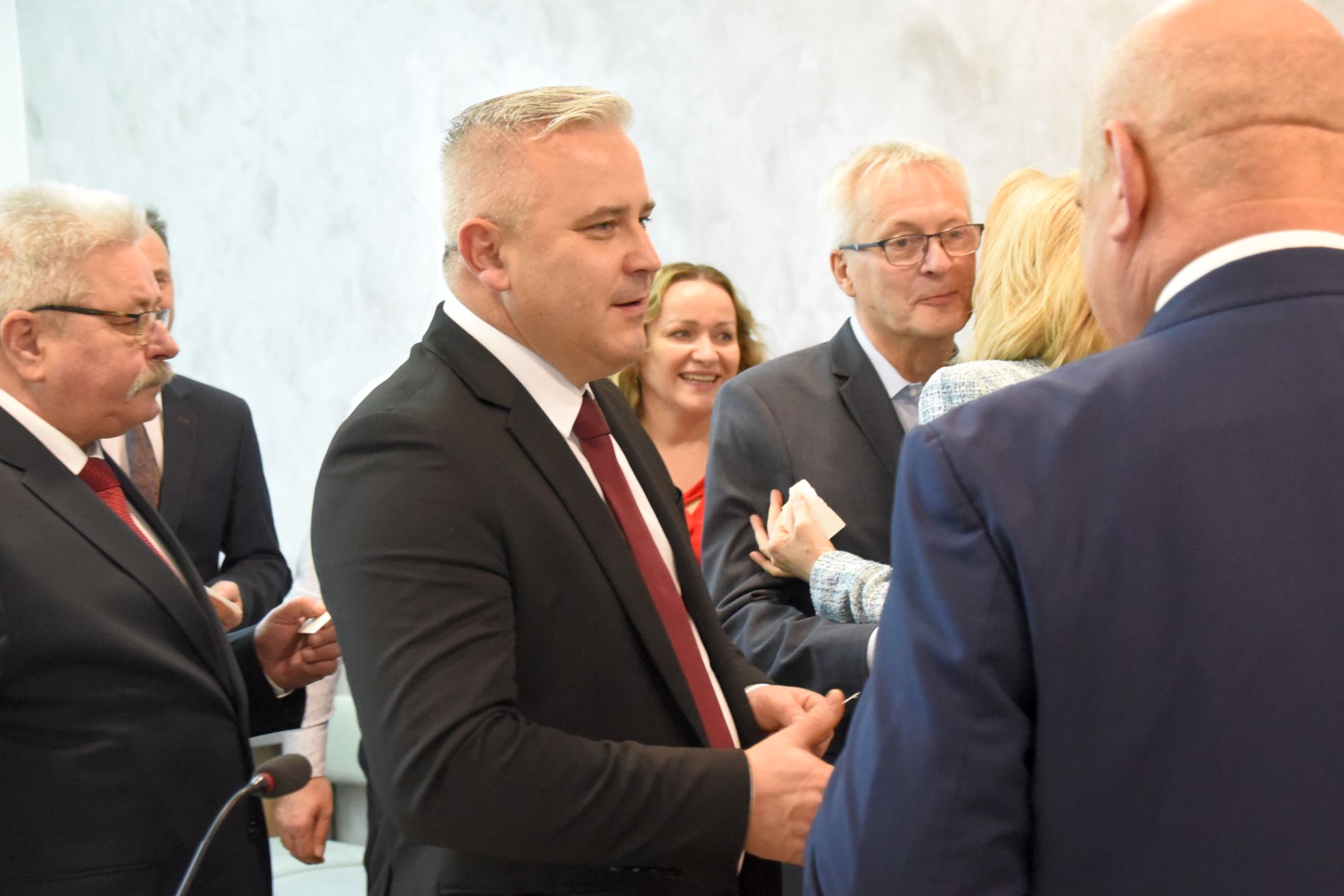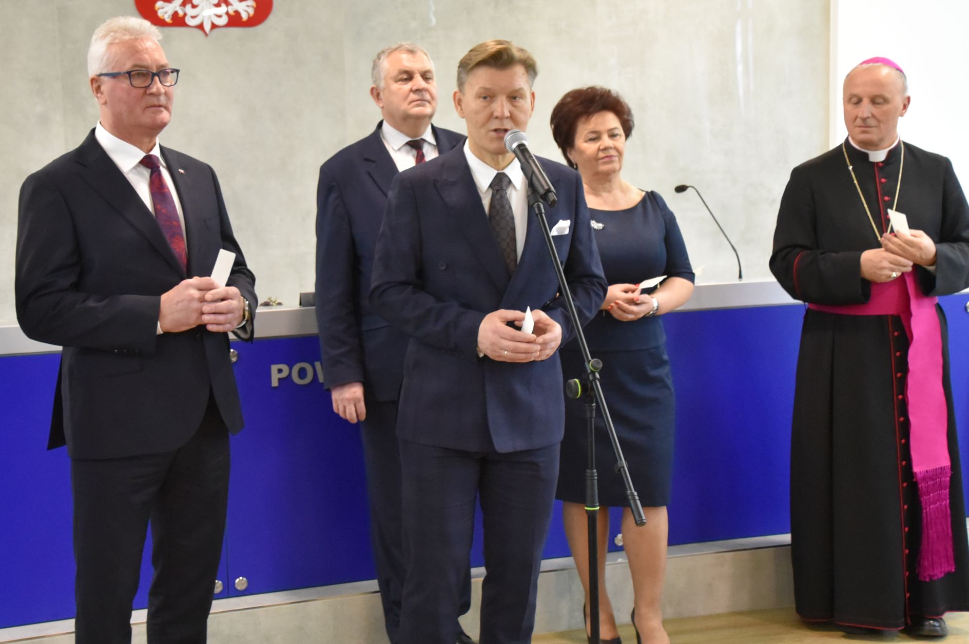 – Życzę miłości, jedności w waszych rodzinach i w tym wszystkim co czynicie działając dla dobra Powiatu Radomskiego – mówił ksiądz biskup Marek Solarczyk, składając każdemu z osobna życzenia.