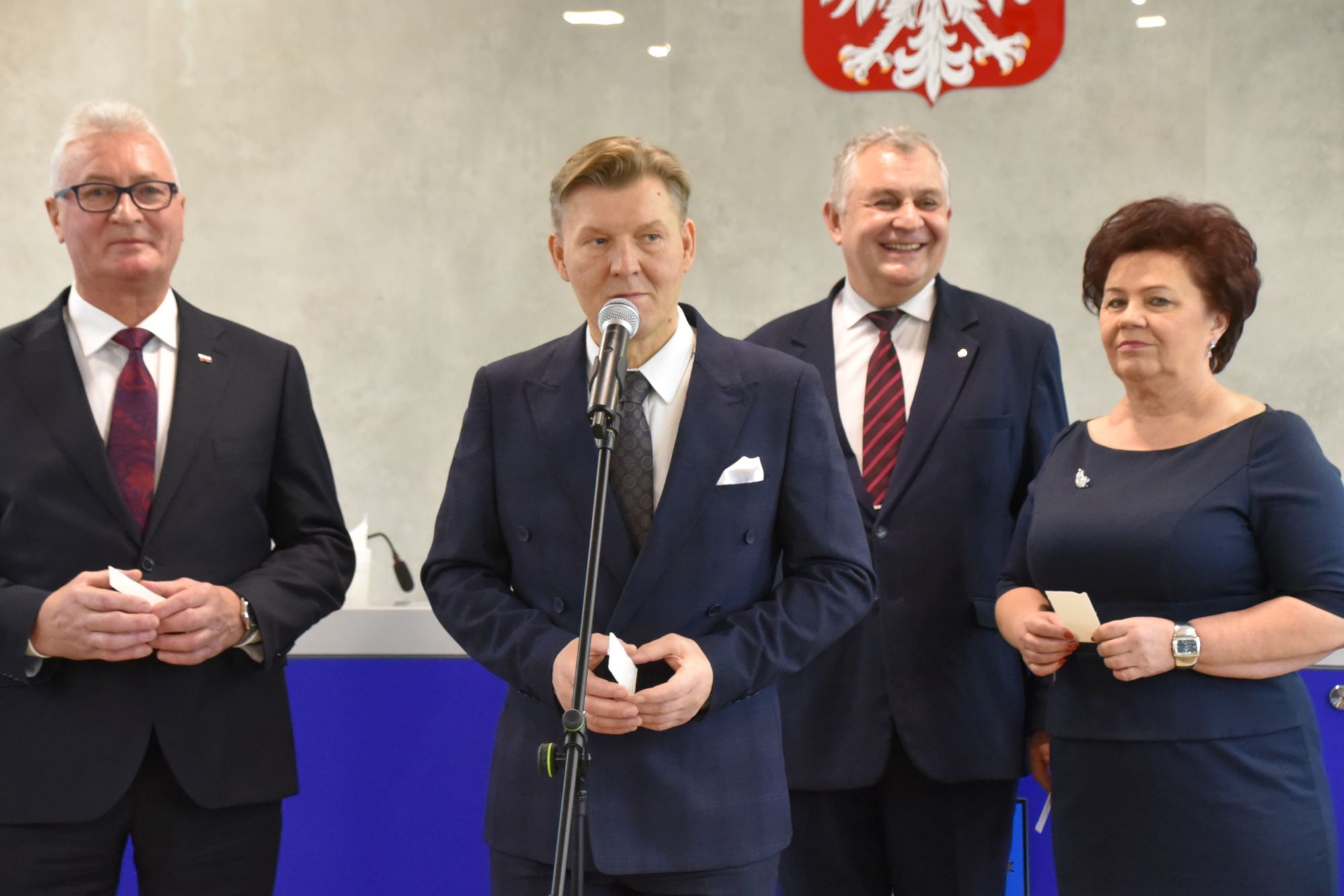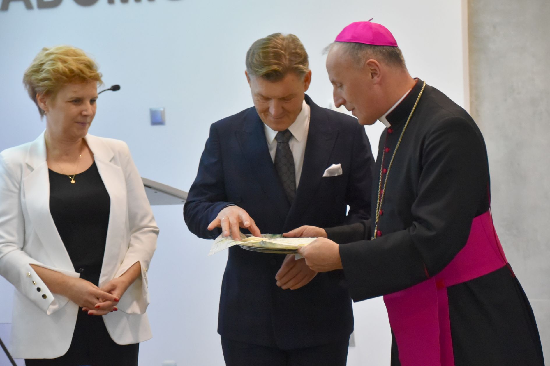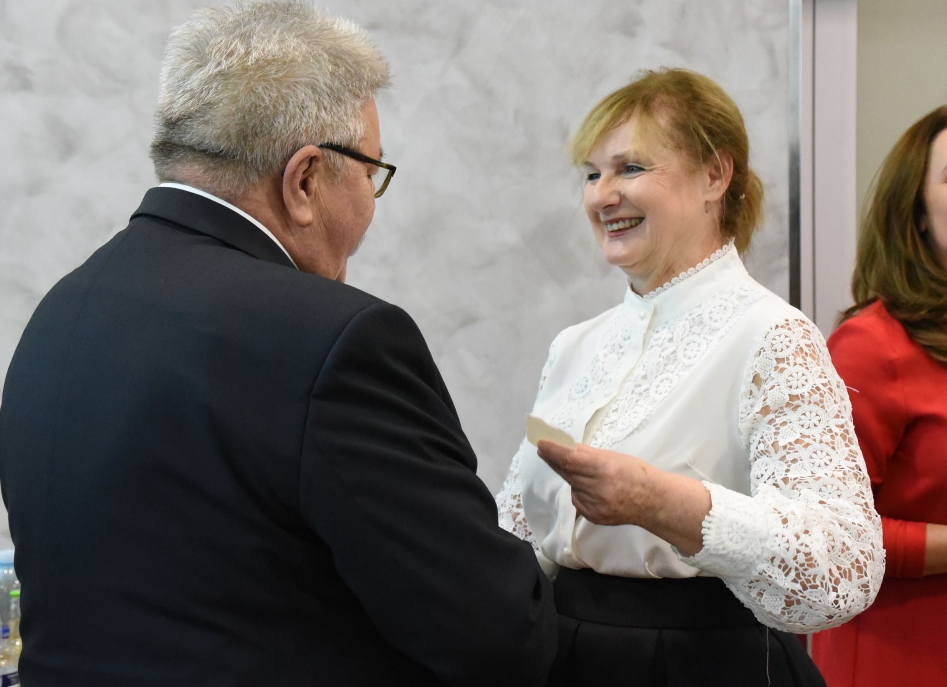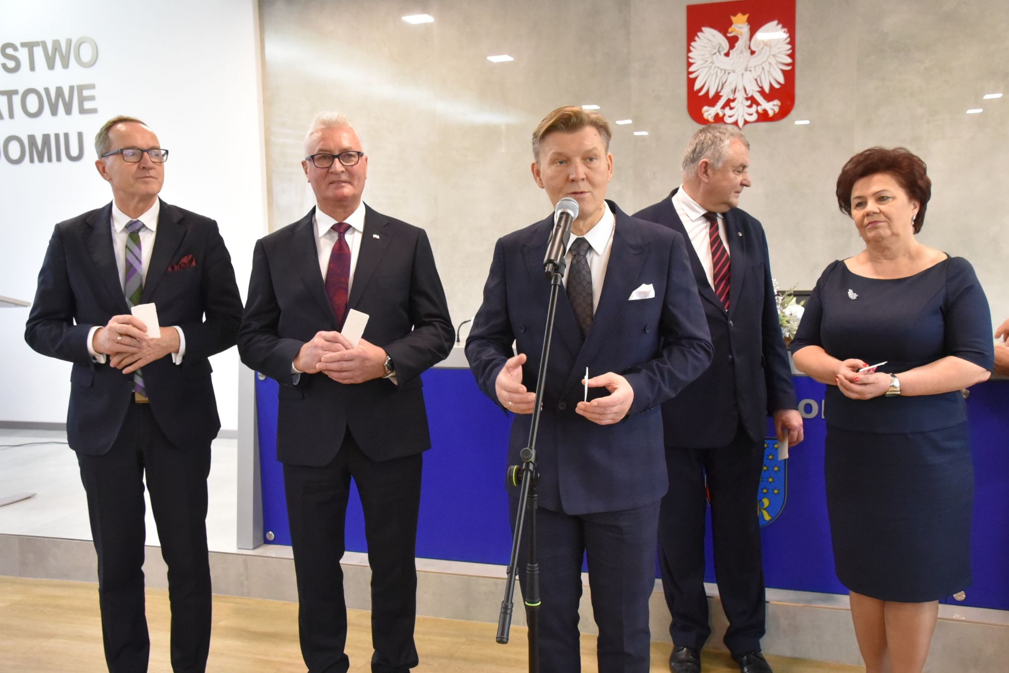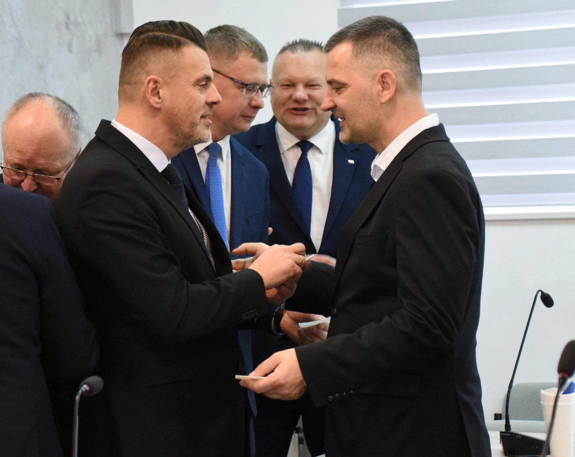 – Życzę miłości, jedności w waszych rodzinach i w tym wszystkim co czynicie działając dla dobra Powiatu Radomskiego – mówił ksiądz biskup Marek Solarczyk, składając każdemu z osobna życzenia.