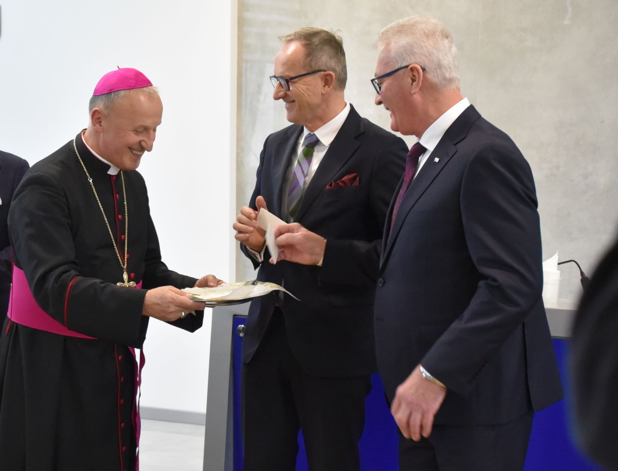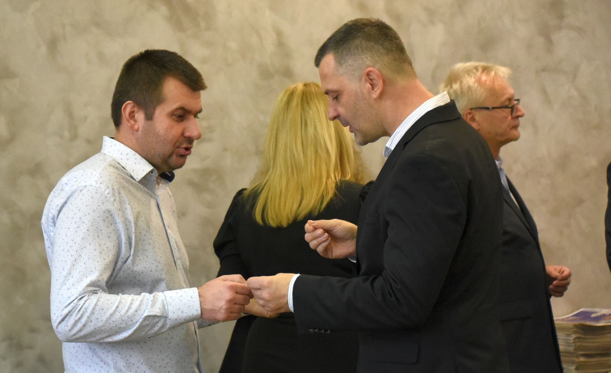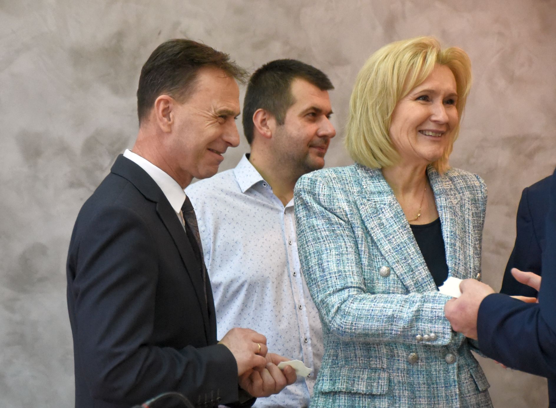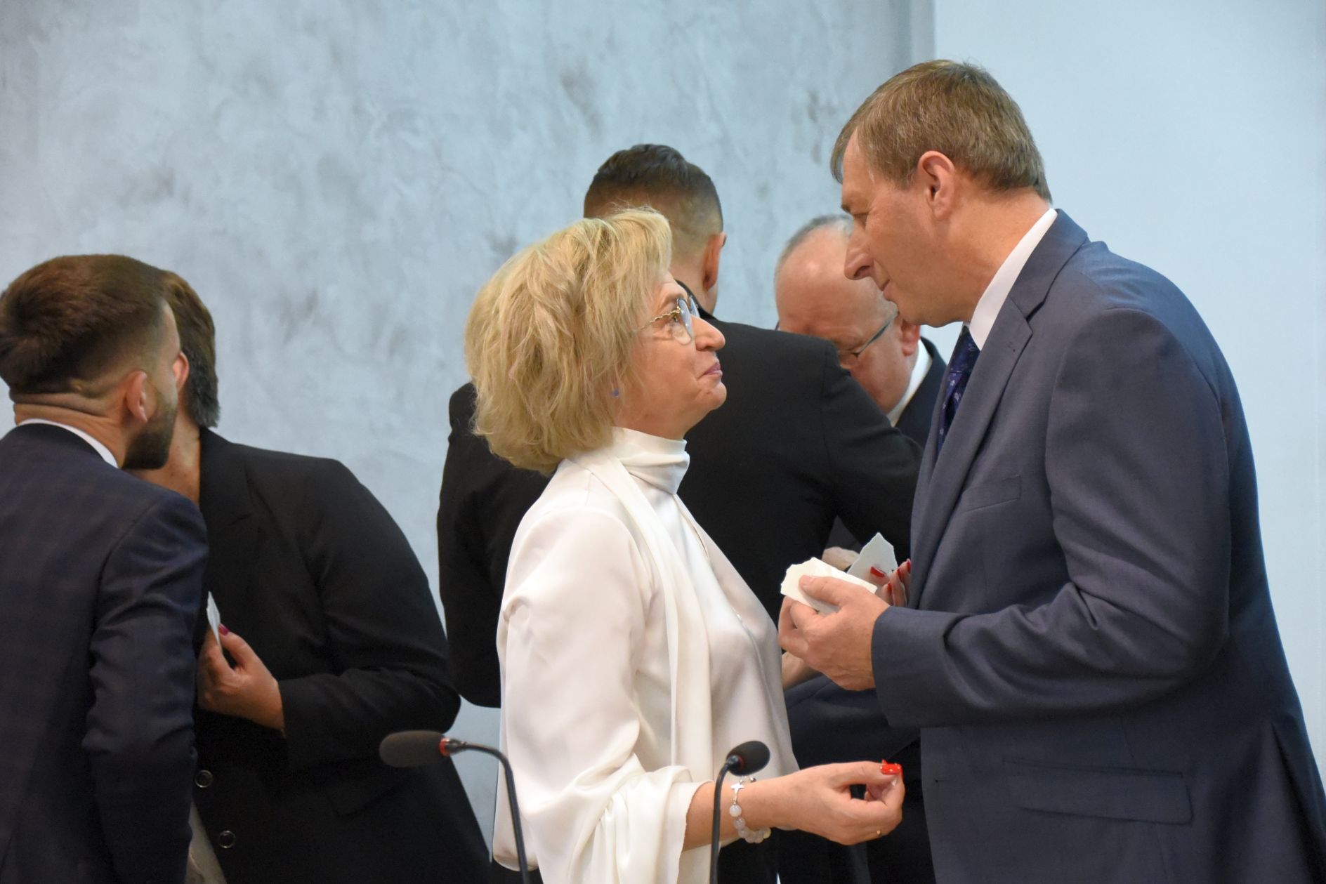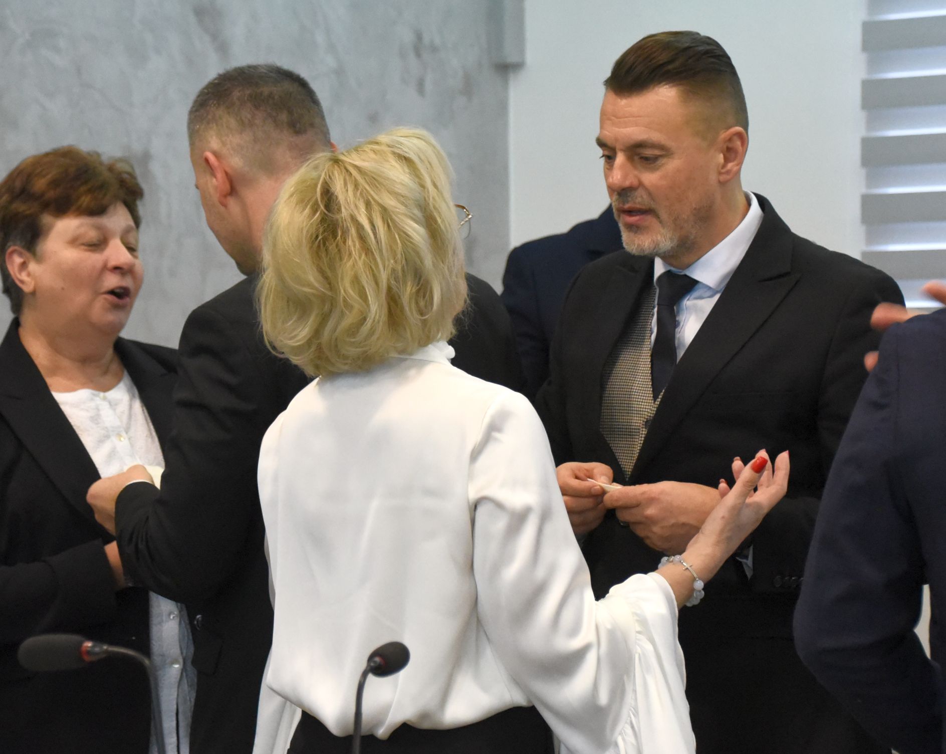– Życzę miłości, jedności w waszych rodzinach i w tym wszystkim co czynicie działając dla dobra Powiatu Radomskiego – mówił ksiądz biskup Marek Solarczyk, składając każdemu z osobna życzenia.