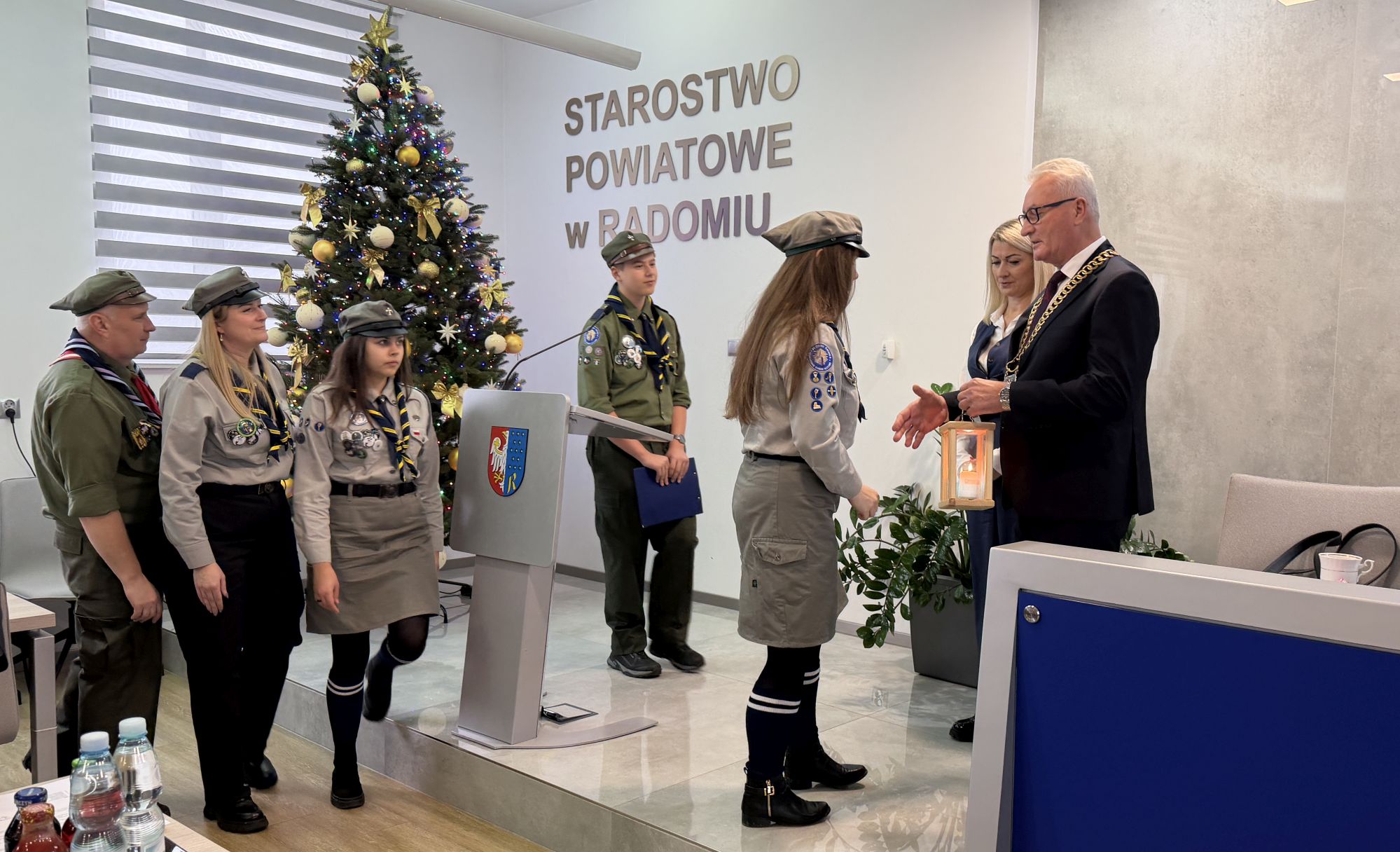 Tradycyjnie już podczas grudniowej sesji harcerze ZHP Hufca Radom – Powiat wraz z komendantem phm. Robertem Prusem przynieśli Betlejemskie Światełko Pokoju.