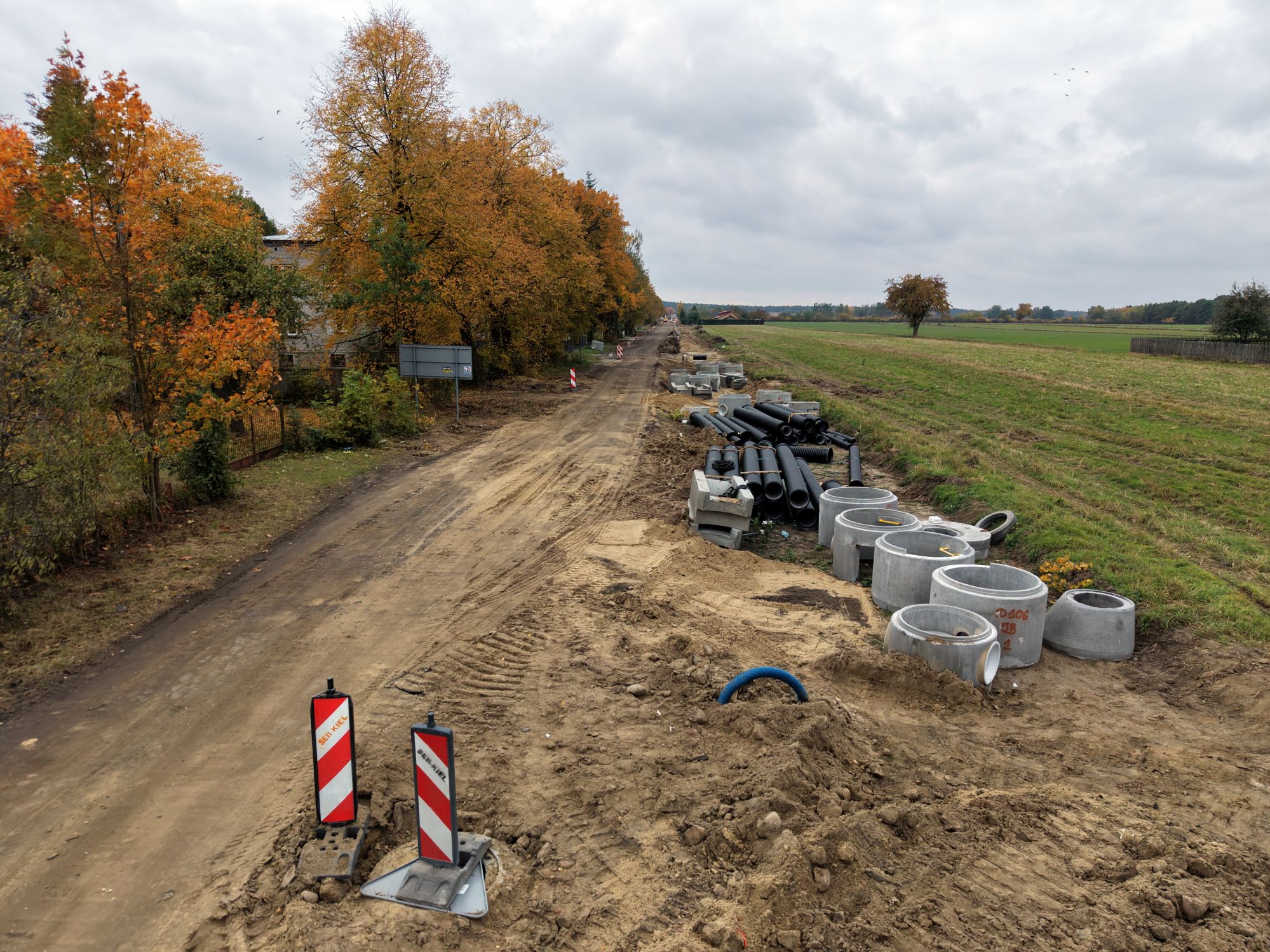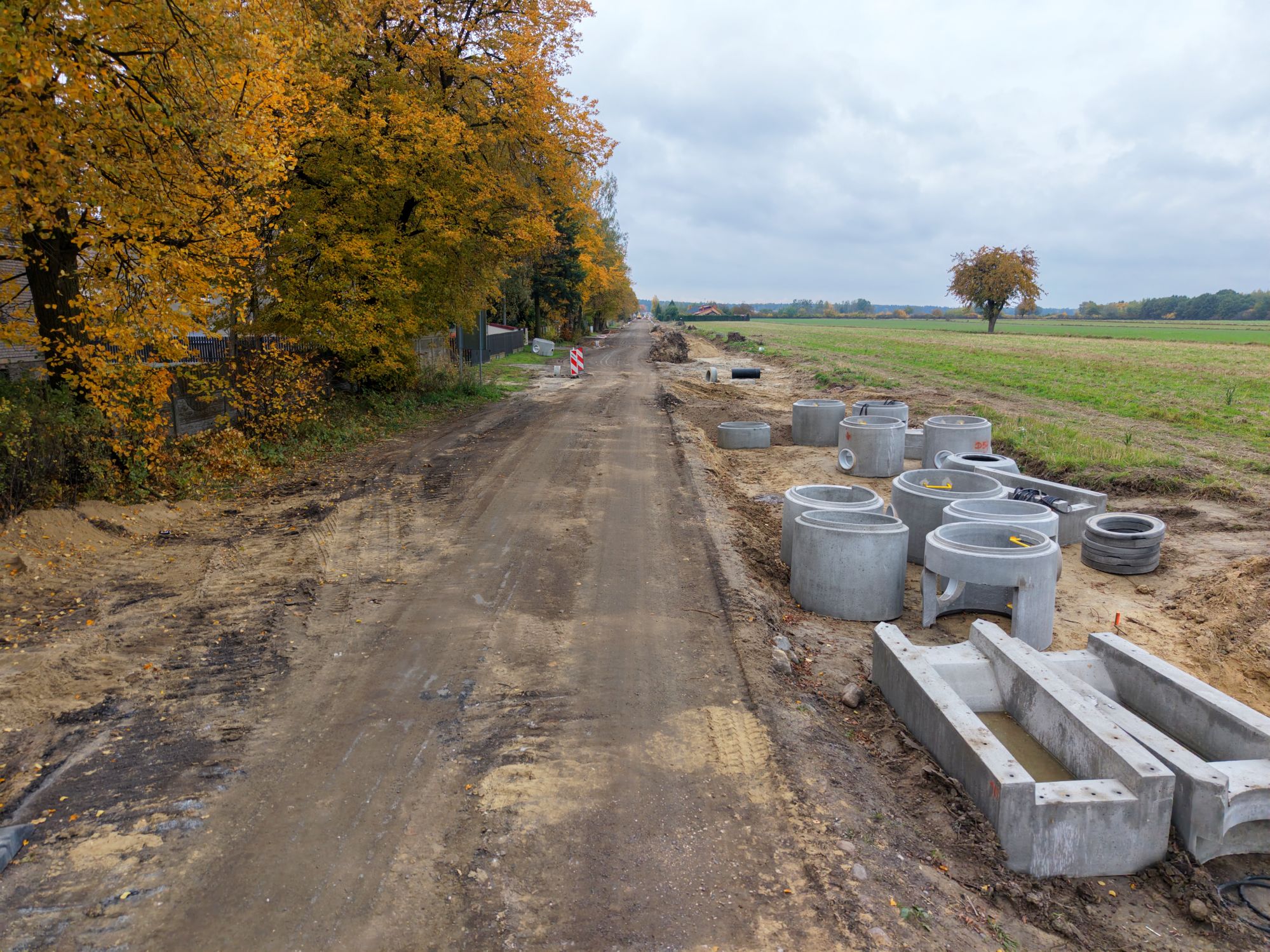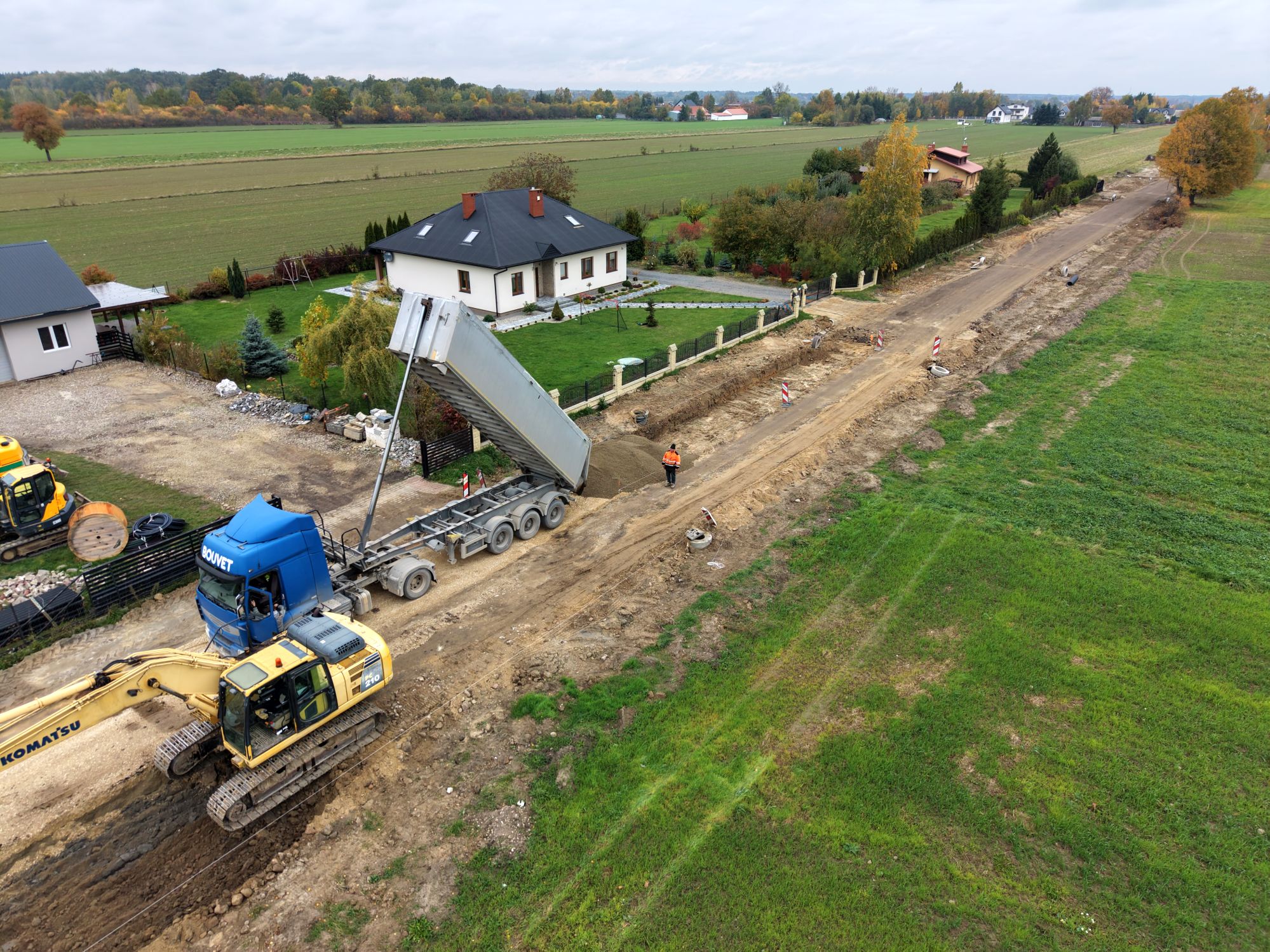 Kolejne kilometry drogi powiatowej powstają między miejscowościami Bardzice, a Zalesice. Wszystkie prace toczą się zgodnie z harmonogramem i gołym okiem widać w jak szybkim tempie przebiega budowa.