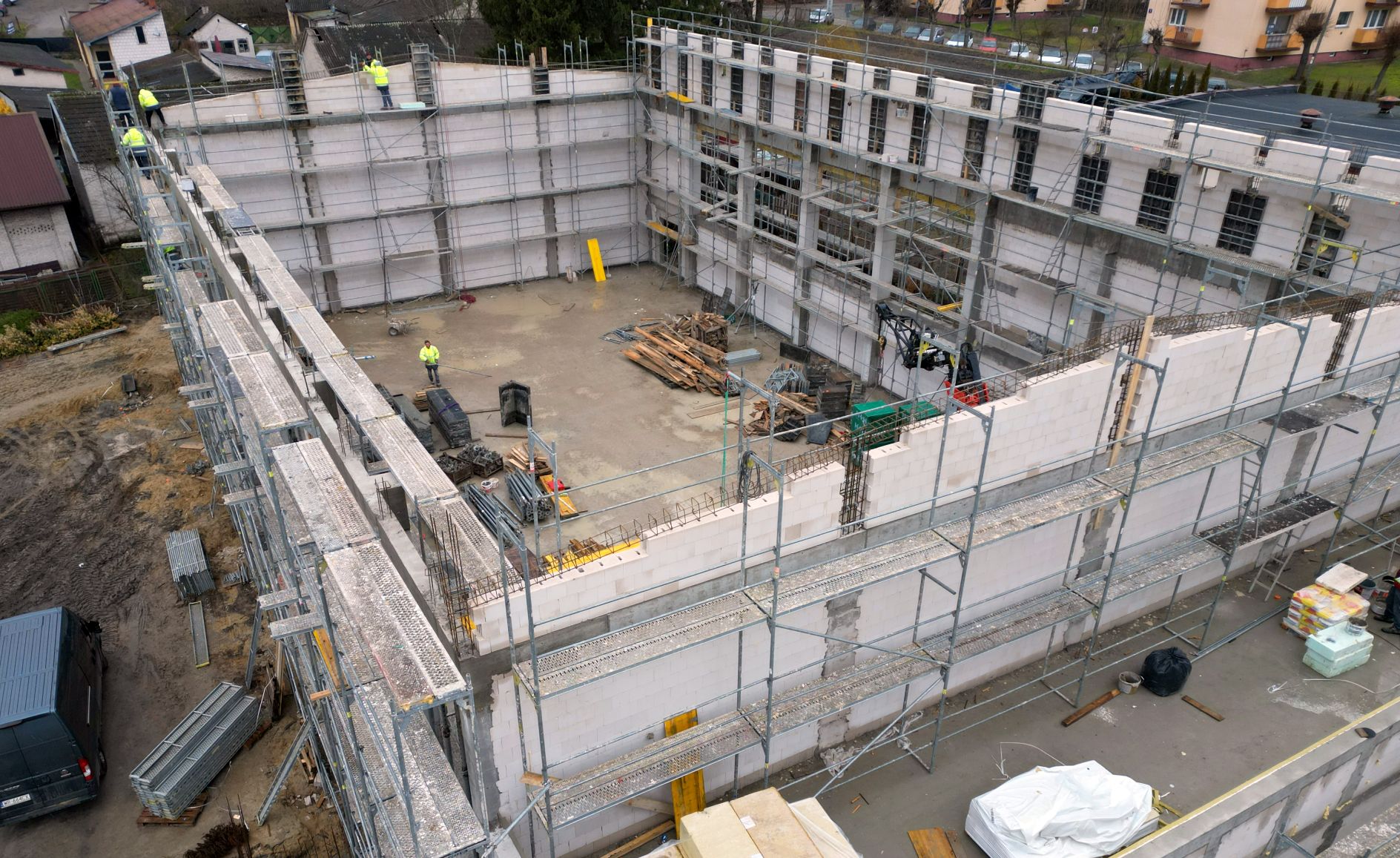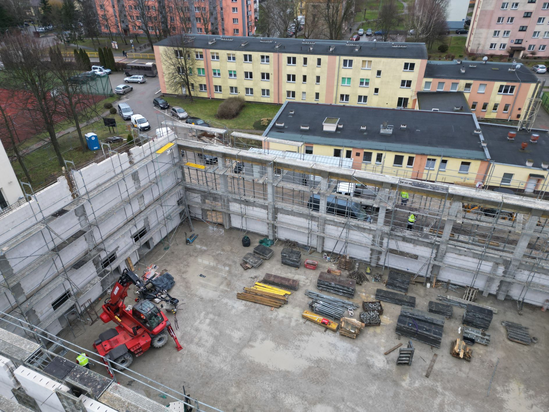 – Pogoda nam sprzyja i jak na razie wszystko przebiega zgodnie z harmonogramem. Wkrótce rozpoczniemy montaż konstrukcji dachu – mówi Cezary Stanisławek, właściciel firmy Czarbud.