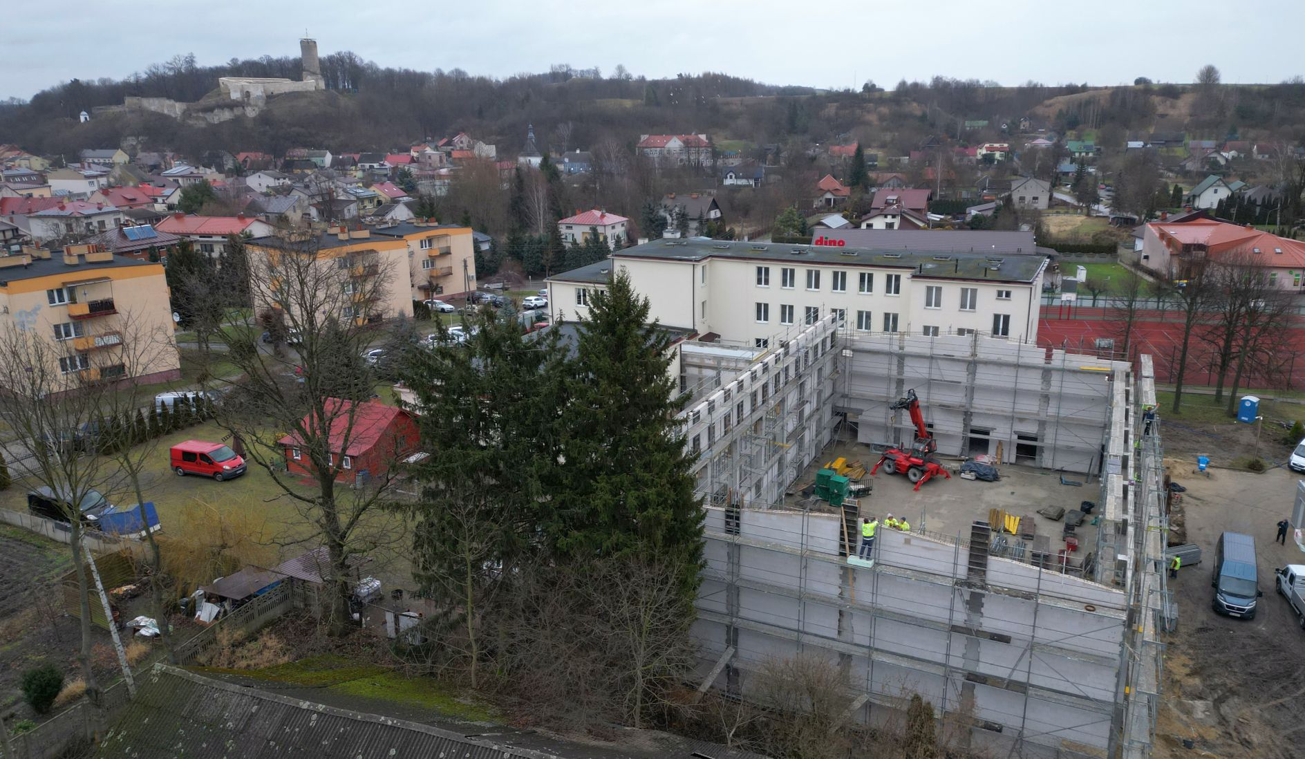 Przypomnijmy, że umowę na budowę nowoczesnego obiektu podpisano w kwietniu ubiegłego roku. Przetarg wygrała radomska firma Czarbud. Nie miała na początku łatwego zadania, bo trzeba było wywieźć około 200 ciężarówek ziemi, aby odpowiednio zniwelować teren. Potem prace ruszyły mocno z kopyta. Obecnie stoją już ściany, ekipy budowlane przygotowują się do montażu dachu.