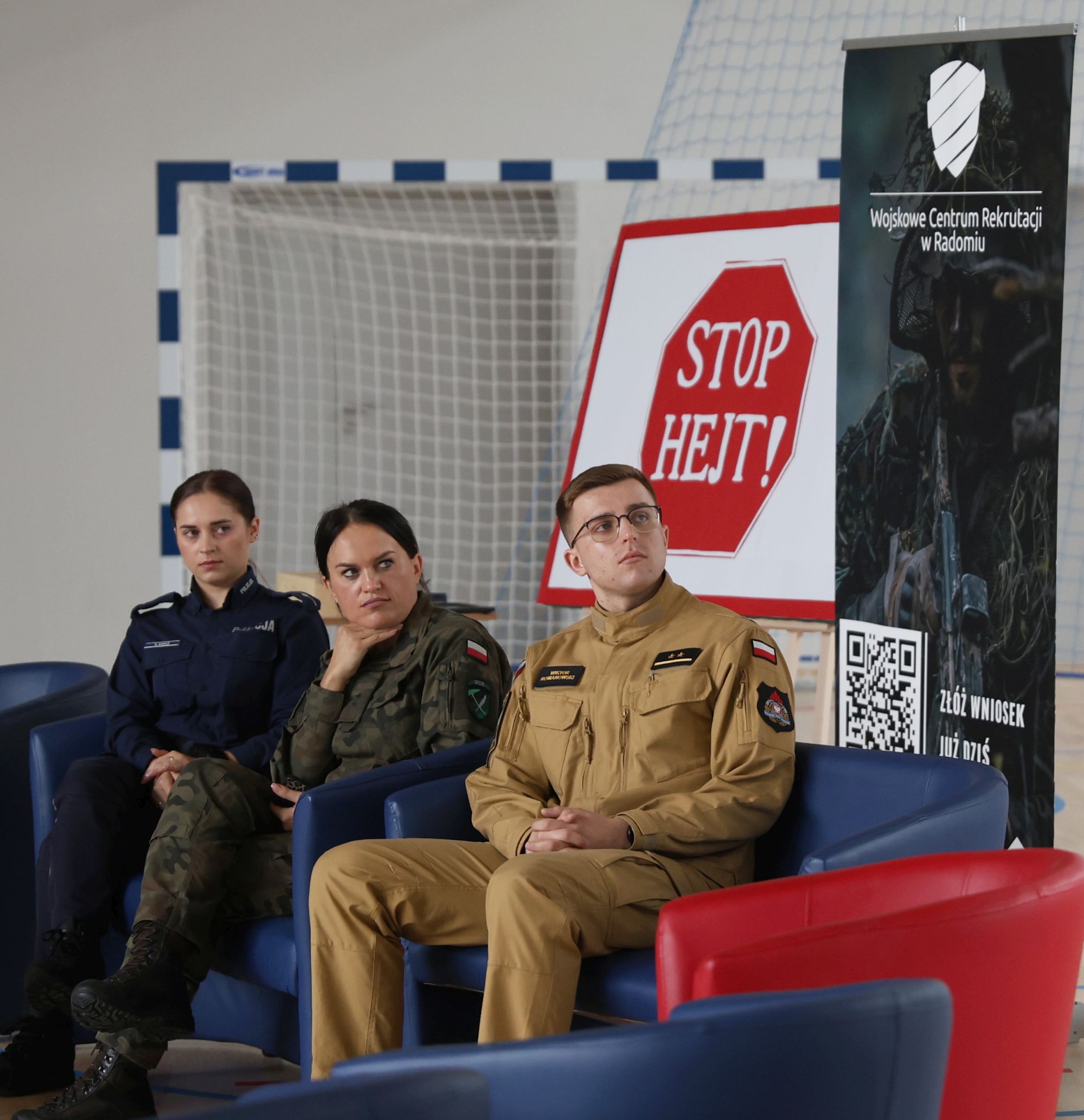 Czym jest hejt, jakie niesie za sobą skutki, jaka jest odpowiedzialność karna, jak nieść pomoc osobom poszkodowanym – o tym wszystkim opowiadali policjanci z Radomia. Uczniowie obejrzeli krótki film opowiadający o nastoletnim uczniu, który był w szkole hejtowany przez kolegów. Wiktor Romanowski z Państwowej Straży Pożarnej w Radomiu opowiedział o tym, że nie warto „hejtować” innych, że warto znaleźć sobie pasję i przyjaciół – choćby wstępując do Młodzieżowej Drużyny Pożarniczej.
