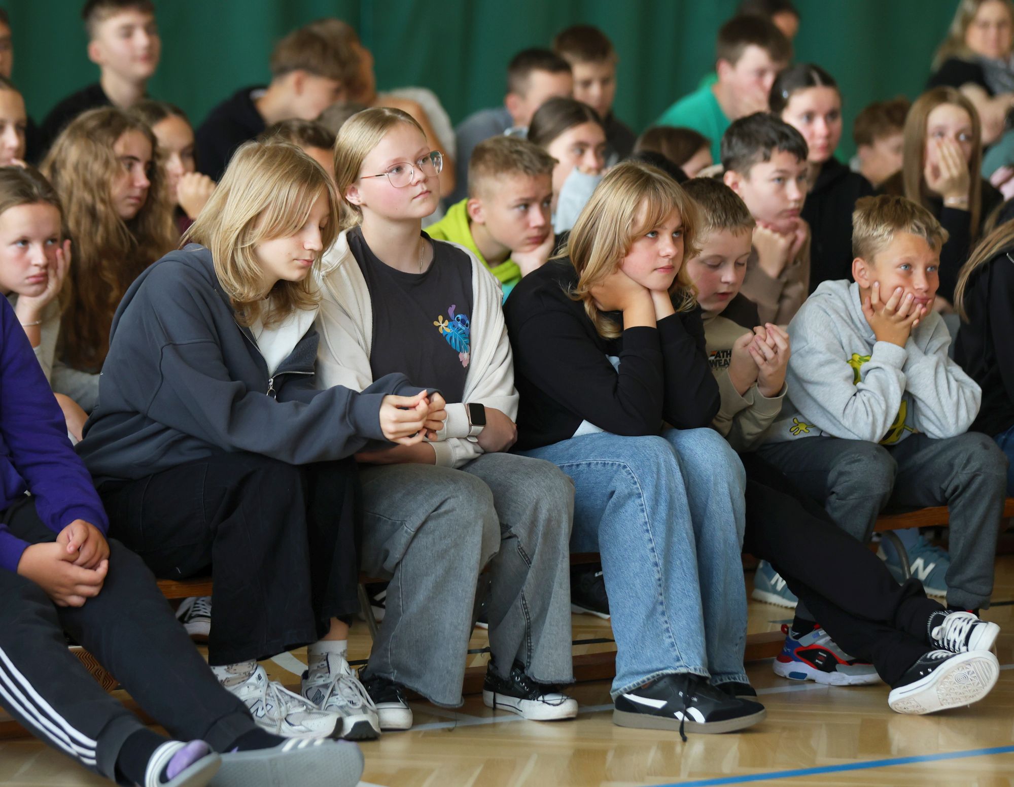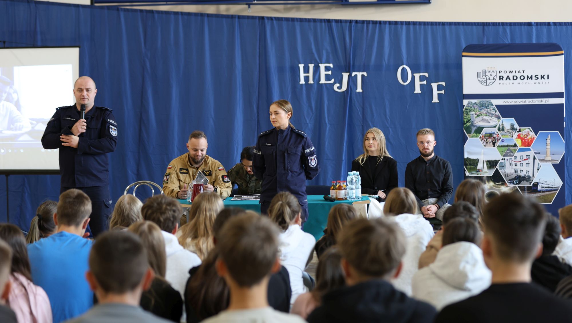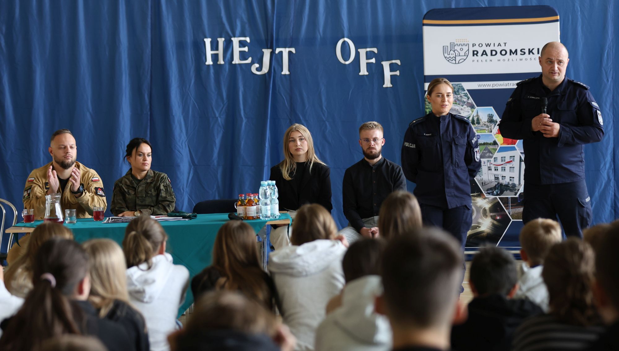 Z siódmo i ósmoklasistami spotkali się policjanci, strażacy, przedstawiciele Wojskowego Centrum Rekrutacji oraz członkowie stowarzyszenia sportowego Pop Gym. Szkoła we Wsoli to już siódma placówka, w której odbywała kampania “Hejt off”. Przypomnijmy, że kampanię społeczną realizuje Wydział Zdrowia i Spraw Społecznych, w ramach Powiatowego Programu Zapobiegania Przestępczości oraz Ochrony Bezpieczeństwa Obywateli i Porządku Publicznego na lata 2025-2028 pod nazwą „Bezpieczny Powiat Radomski”. Ruszyła ona 15 września i potrwa do 29 października.