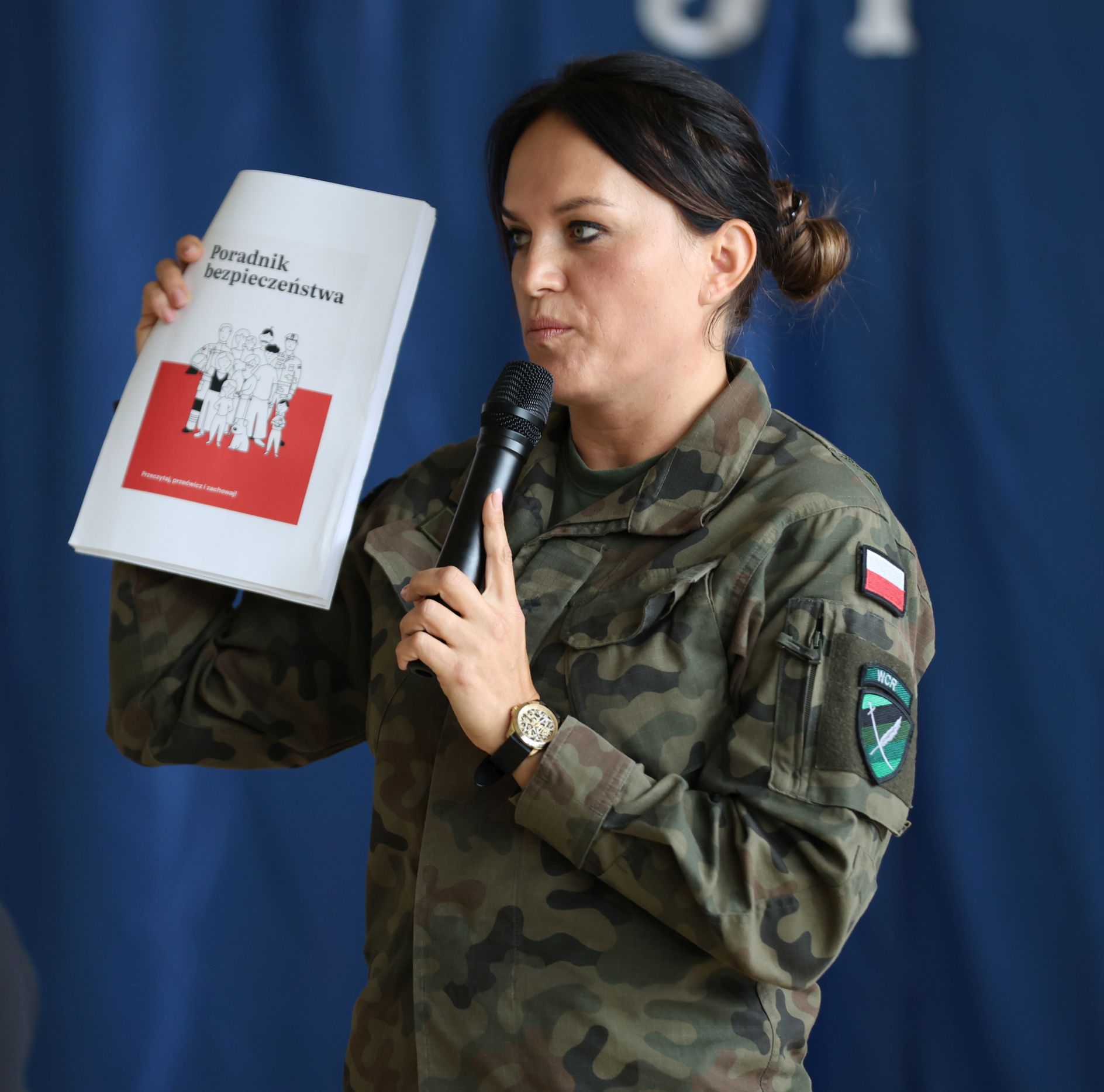 Podkomisarz Bernadetta Nędzi z Wojskowego Centrum Rekrutacji w Radomiu również sporo mówiła o hejcie, ale też opowiedziała młodzieży czym jest tak zwany plecak ewakuacyjny na wypadek zagrożenia.
