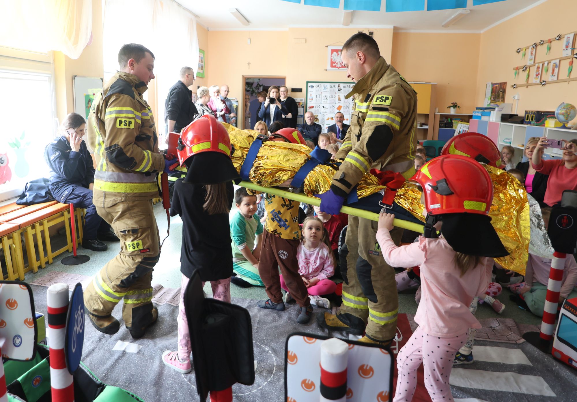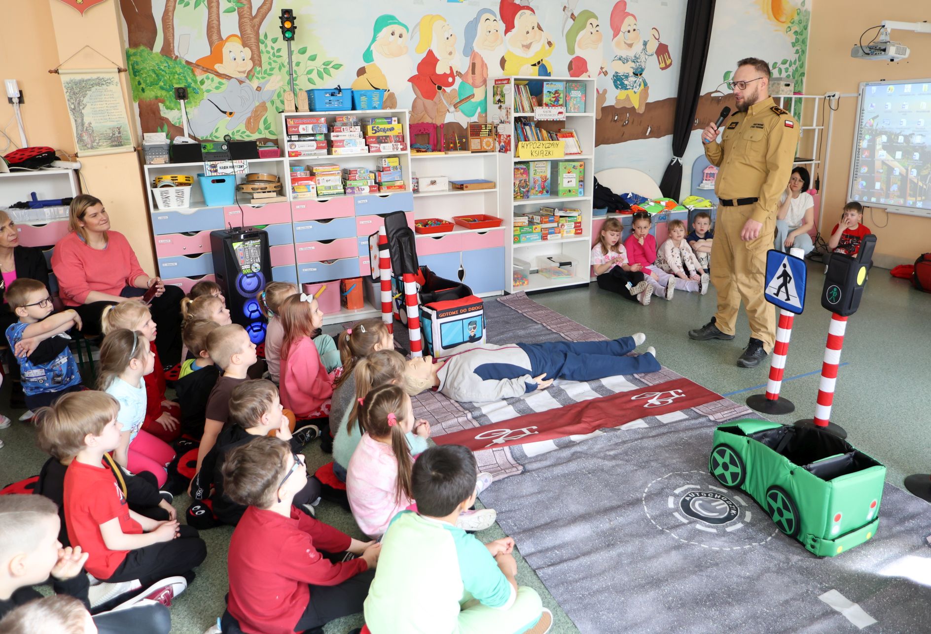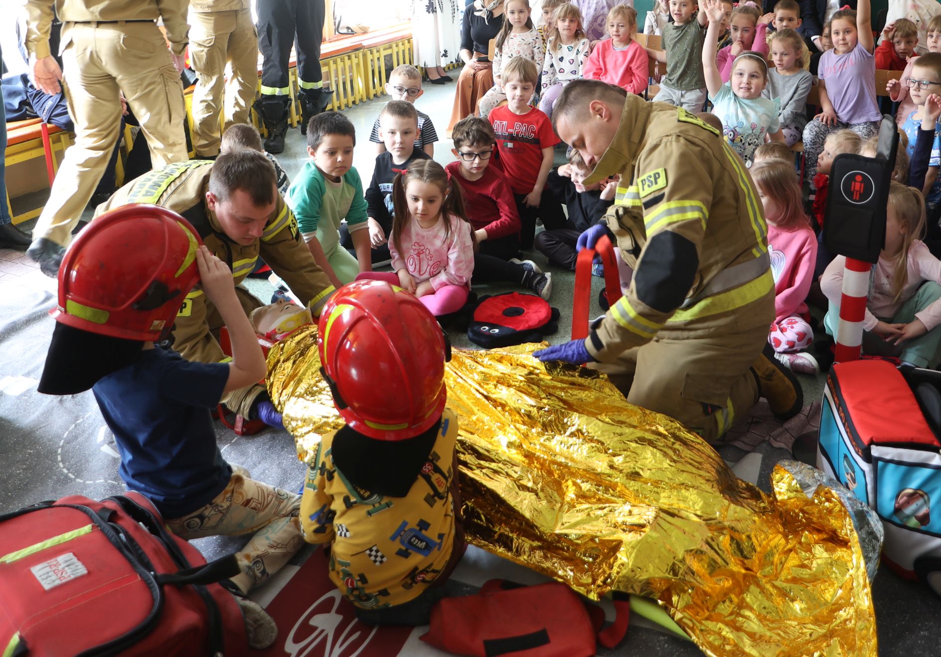 We wtorek inauguracyjne spotkanie odbyło się w przedszkolu nr 2 w Pionkach, czyli Lipowy Zakątek. Funkcjonariusze Komendy Miejskiej Policji z Radomia przeprowadzili bardzo ciekawą prelekcję na temat bezpieczeństwa ruchu drogowego. Na specjalnie zorganizowanym „mini placu” odgrywano różne scenki związane z przechodzeniem przez jezdnie, poruszaniem się po ścieżkach rowerowych. Z kolei strażacy przeprowadzili pokaz pomocy przedmedycznej. Przekazali maluchom, gdzie dzwonić pod numer alarmowy, jak przekazać informację i zdarzeniu.
