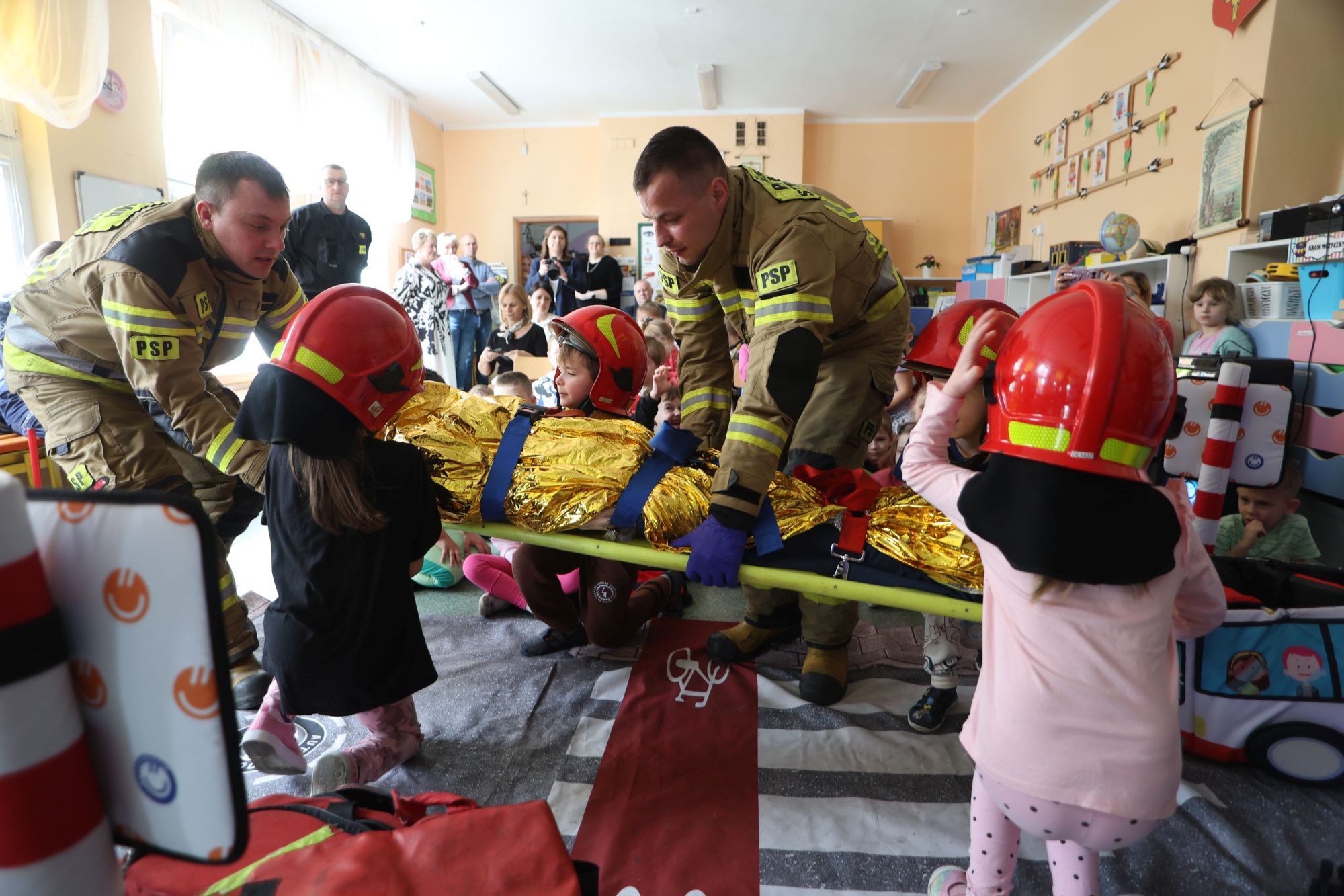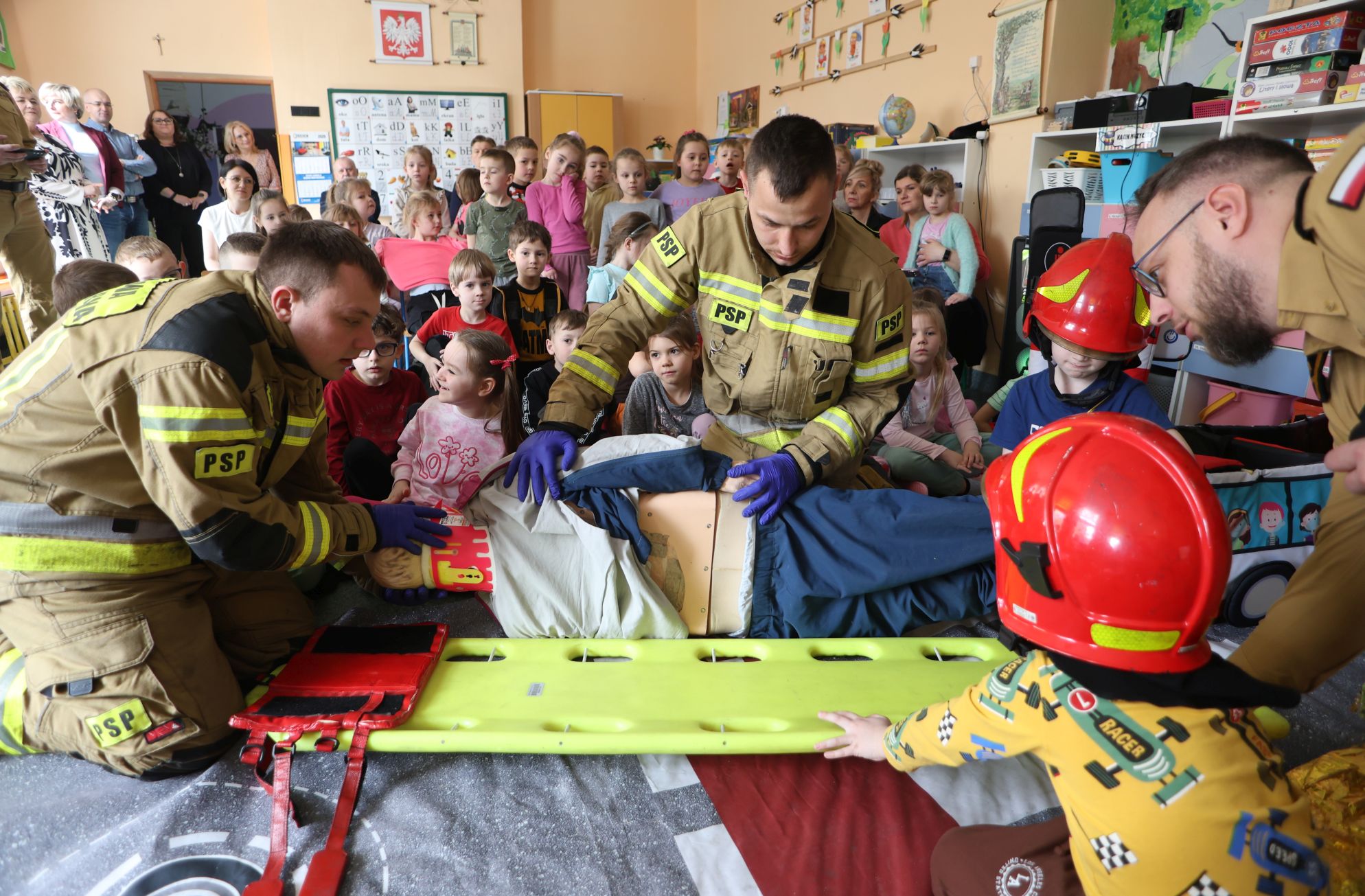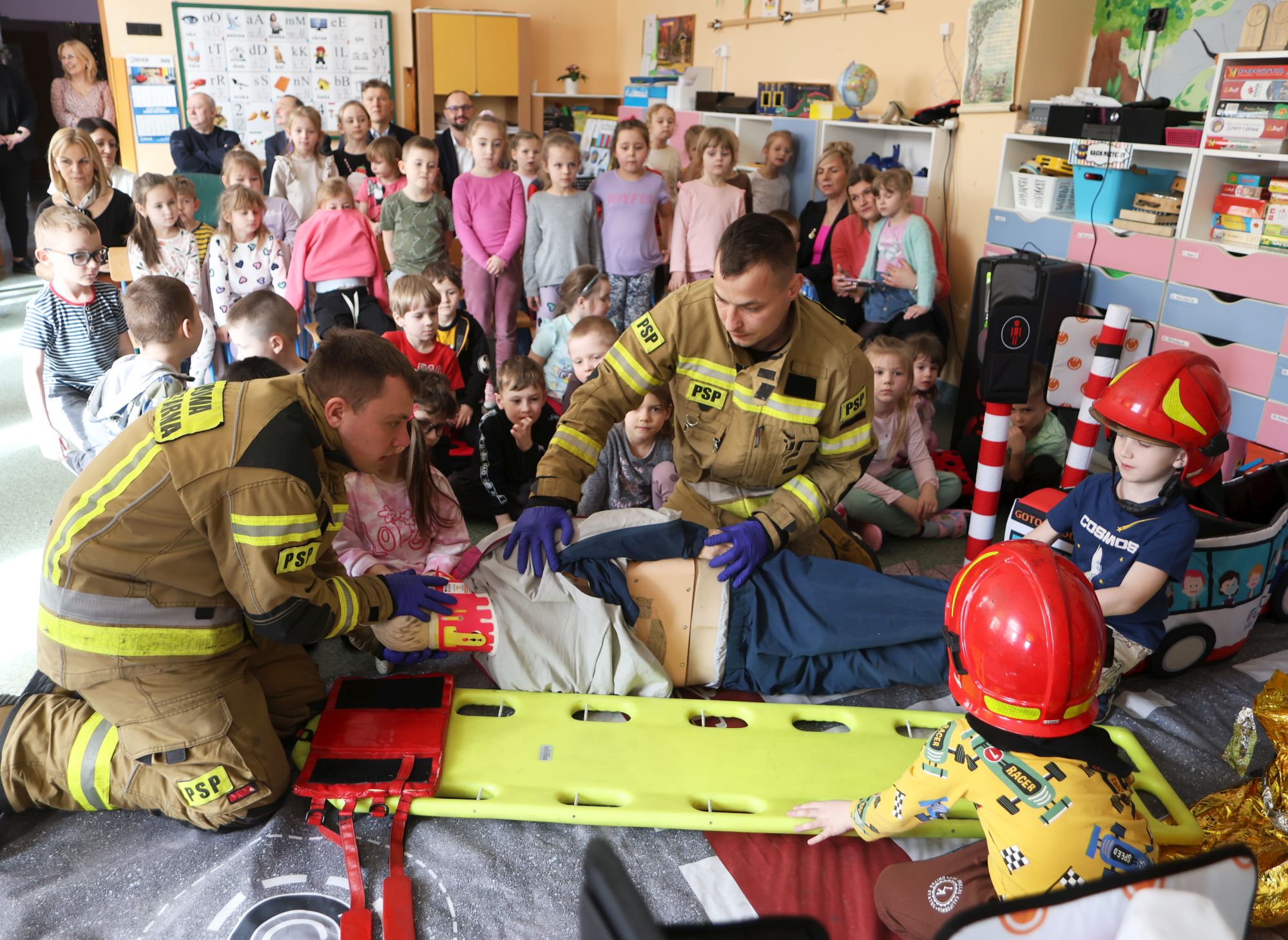 We wtorek inauguracyjne spotkanie odbyło się w przedszkolu nr 2 w Pionkach, czyli Lipowy Zakątek. Funkcjonariusze Komendy Miejskiej Policji z Radomia przeprowadzili bardzo ciekawą prelekcję na temat bezpieczeństwa ruchu drogowego. Na specjalnie zorganizowanym „mini placu” odgrywano różne scenki związane z przechodzeniem przez jezdnie, poruszaniem się po ścieżkach rowerowych. Z kolei strażacy przeprowadzili pokaz pomocy przedmedycznej. Przekazali maluchom, gdzie dzwonić pod numer alarmowy, jak przekazać informację i zdarzeniu.