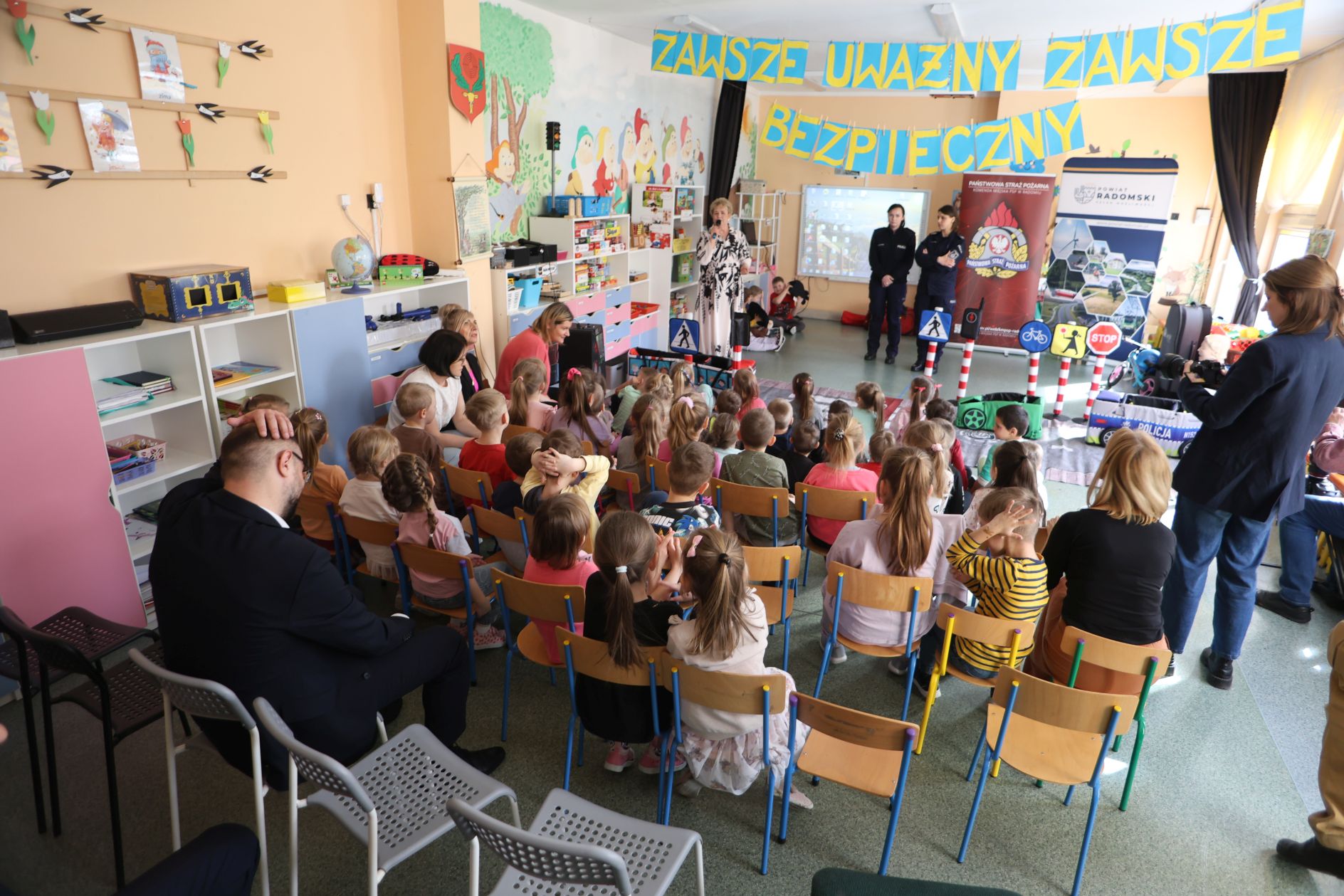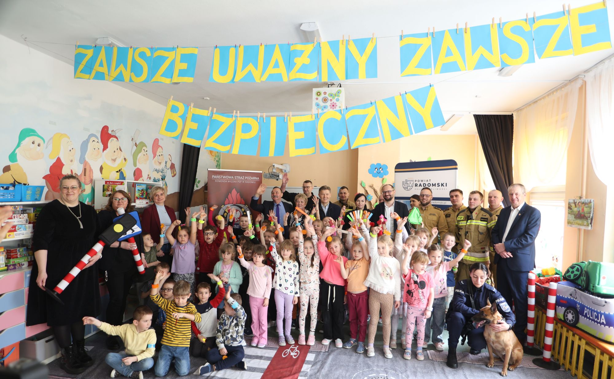 Ruszyła kampania prewencyjna skierowana do dzieci w wieku przedszkolnym na terenie Powiatu Radomskiego pn. „Zawsze uważny zawsze bezpieczny”. Jej celem jest wzrost wiedzy najmłodszych, niechronionych uczestników ruchu drogowego, czyli pieszych i rowerzystów. We wtorek, 18 marca odbyło się pierwsze spotkanie w przedszkolu w Pionkach. Wraz z policjantami i strażakami odwiedzimy przedszkola we wszystkich trzynastu gminach.