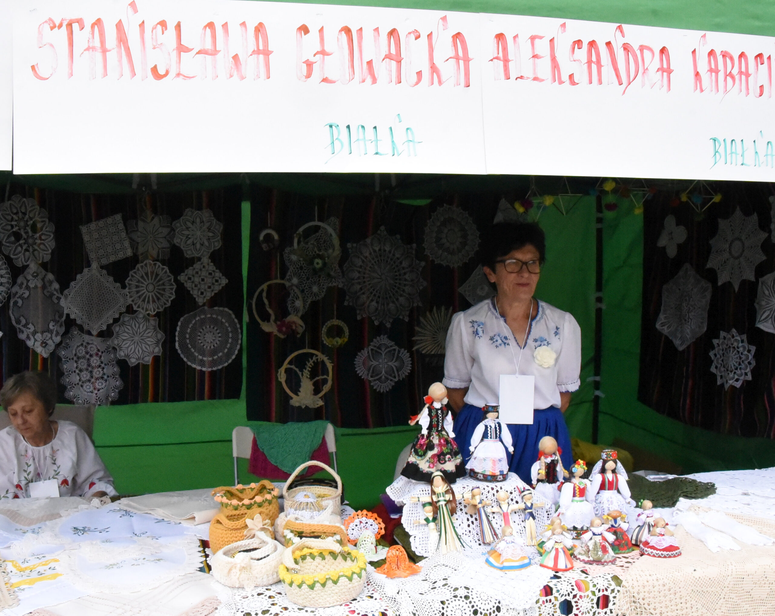 Tak było też i w tym roku. Na stoiskach prezentowali się twórcy z różnych dziedzin: garncarze, rzeźbiarze, kowale, wikliniarze, hafciarki, koronczarki, twórcy lalek, artyści tworzący z drewna, sznurka, sizalu, bibuły, papieru, srebra i wosku. Obecni byli pszczelarze i Koła Gospodyń Wiejskich, biorące udział w konkursie Smaki Powiatu Radomskiego.