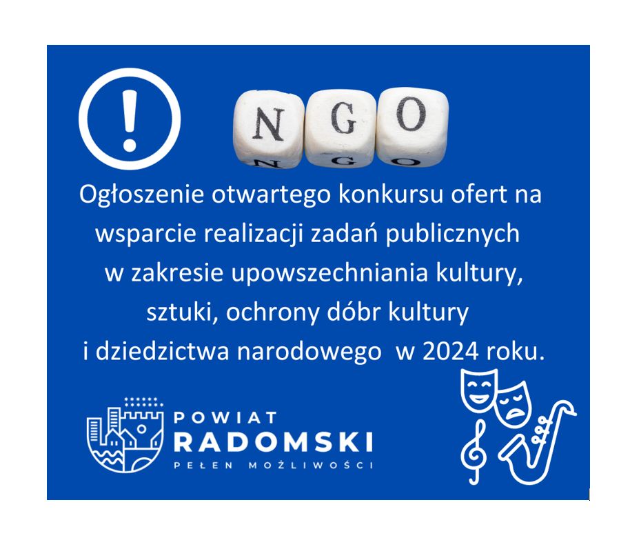 Ogłoszenie otwartego konkursu ofert na wsparcie realizacji zadań publicznych w zakresie upowszechniania kultury, sztuki, ochrony dóbr kultury i dziedzictwa narodowego w 2024 roku.