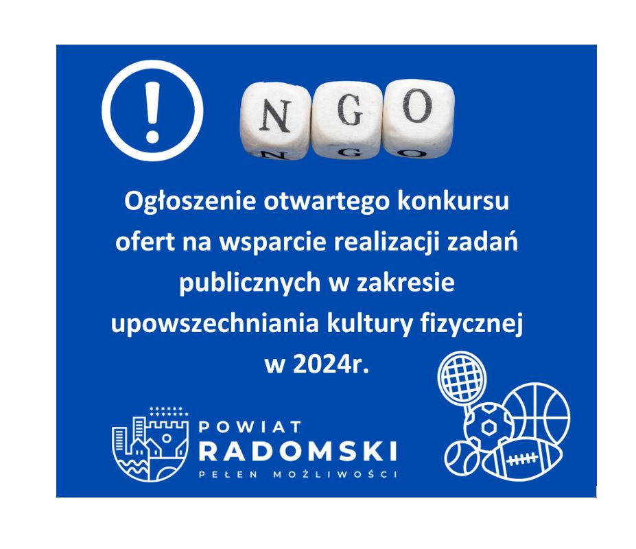 Ogłoszenie otwartego konkursu ofert na wsparcie realizacji zadań publicznych w 2024 roku w zakresie wspierania i upowszechniania kultury fizycznej.