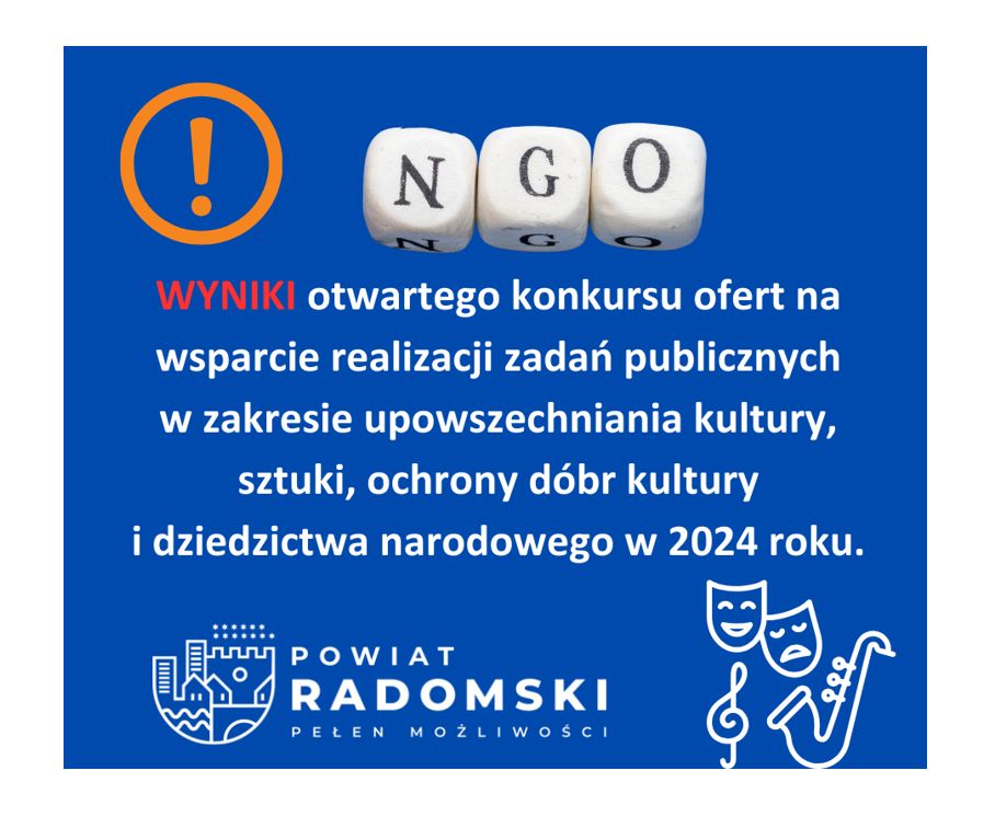Wyniki otwartego konkursu ofert na wsparcie realizacji zadań publicznych w zakresie upowszechniania kultury, sztuki, ochrony dóbr kultury i dziedzictwa narodowego w 2024 roku.