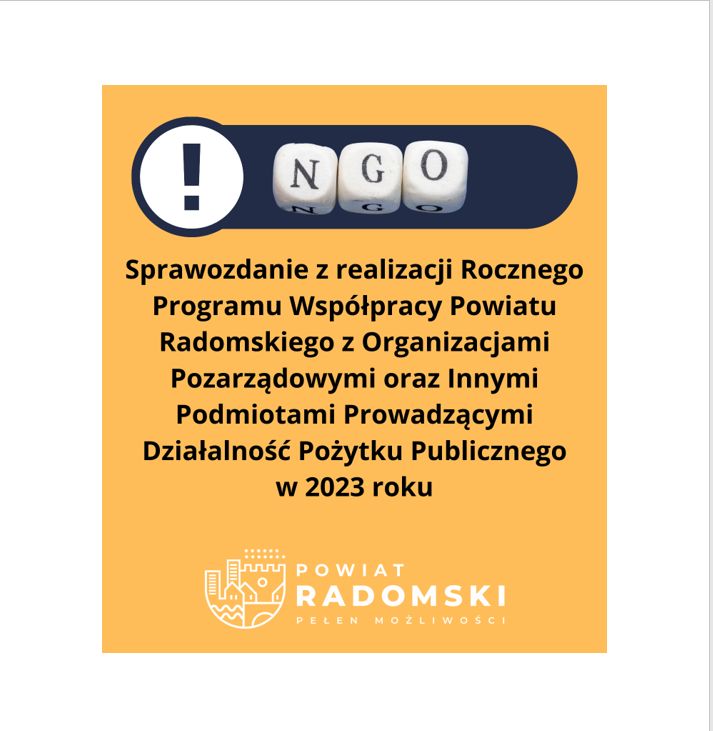 Sprawozdanie z realizacji Rocznego Programu Współpracy Powiatu Radomskiego Organizacjami Pozarządowymi oraz Innymi Podmiotami Prowadzącymi Działalność Pożytku Publicznego w 2023 roku