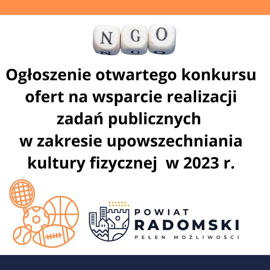 Ogłoszenie otwartego konkursu ofert na wsparcie realizacji zadań publicznych w zakresie wspierania i upowszechniania kultury fizycznej w 2023 roku.
