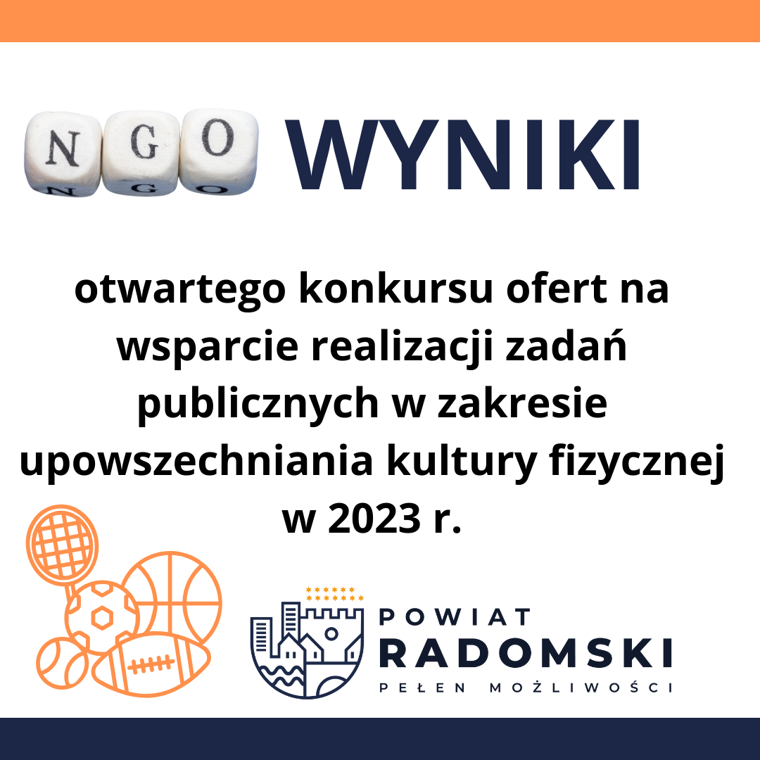 Wyniki otwartego konkursu ofert na wsparcie realizacji zadań publicznych w zakresie wspierania i upowszechniania kultury fizycznej w 2023 roku